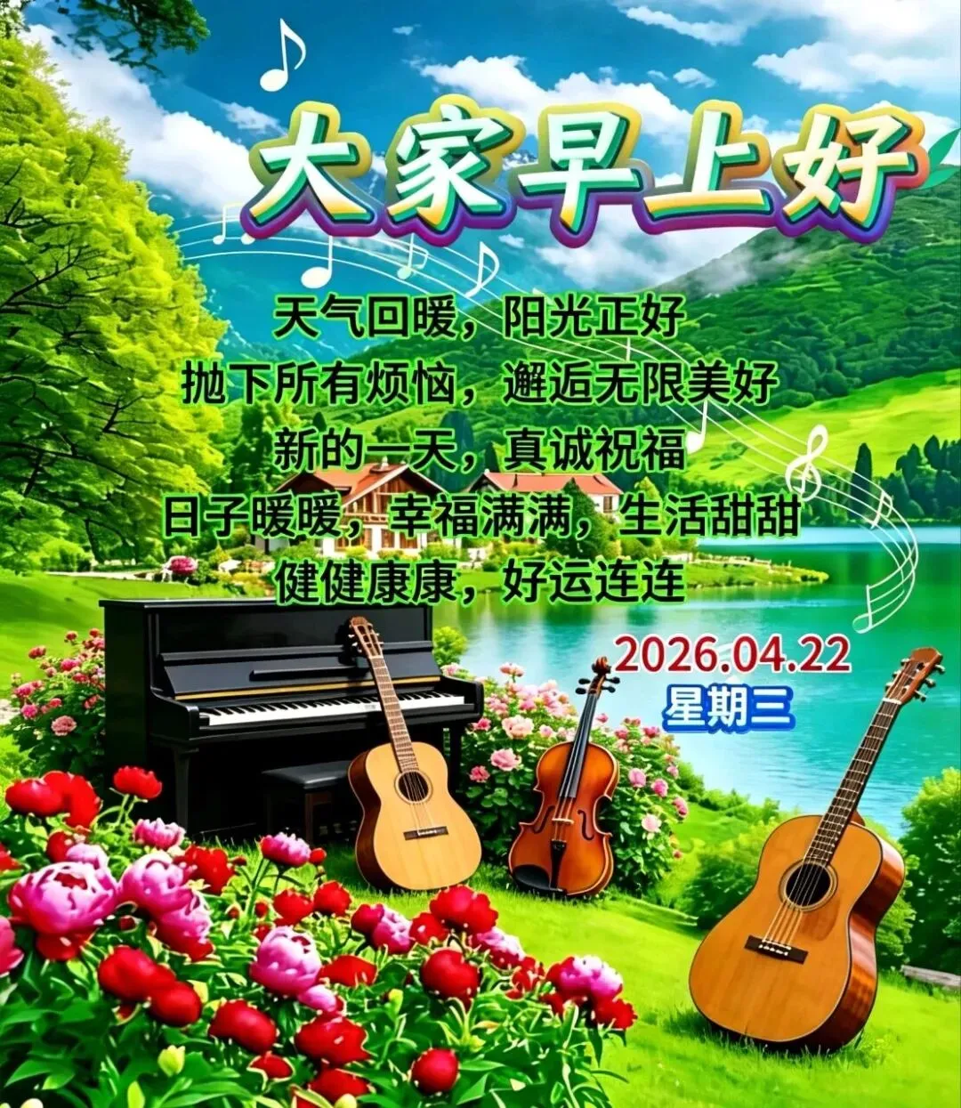 当前位置:首页>美女资讯>4月22日周三早安祝福图片:愿愿你我:天天安好,时时吉祥,一生平安幸福,早安!