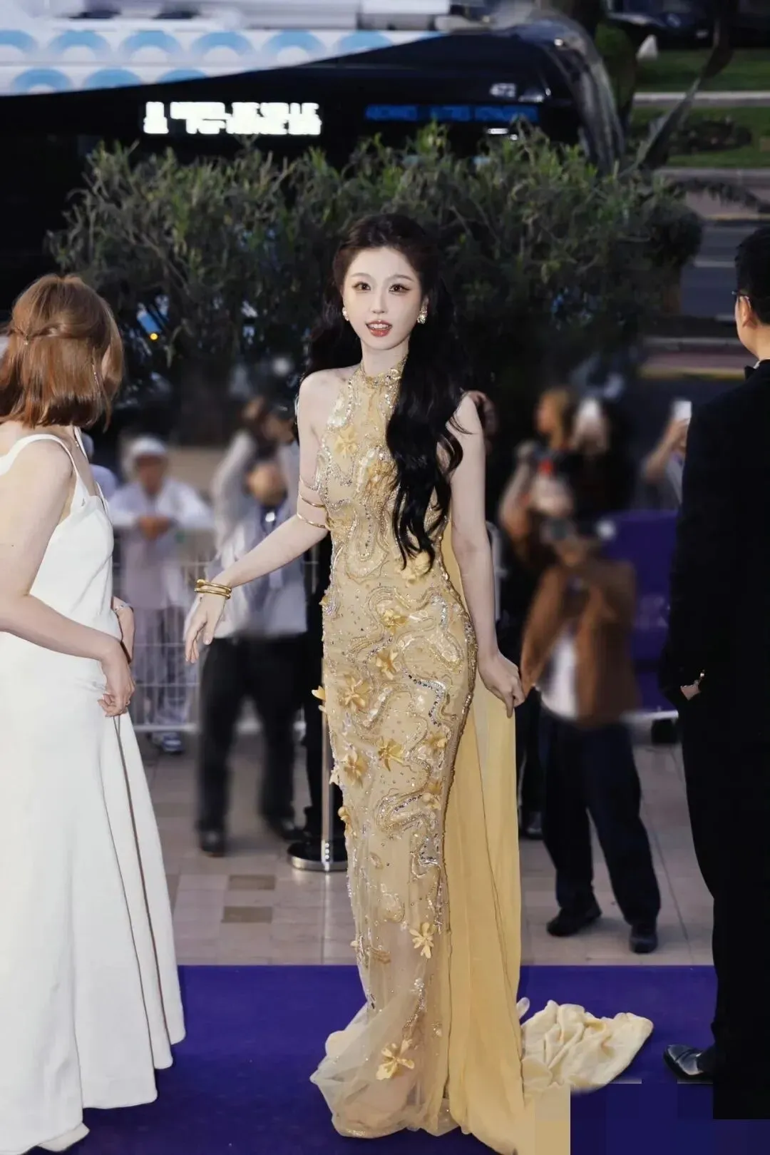 四月下旬,虞书欣受邀出席戛纳世界人工智能电影节,身着法国高定品牌新款湖蓝色抹胸长裙惊艳亮相,搭配未来感配饰打造的“蓝色妖姬”造型迅速引爆全网。相关话题单日阅读量破亿,外媒盛赞其为“南法光影女神”,仿妆、穿搭内容在各大社交平台刷屏,成功打破大众对她的固有印象。