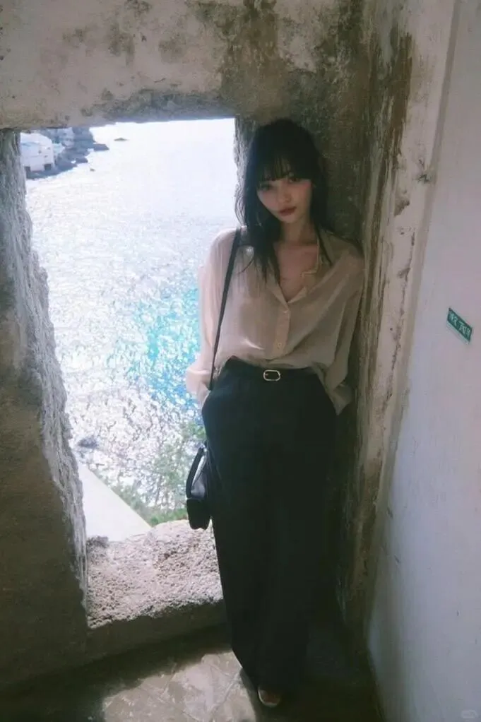 春夏拍照,衣服颜色不要太杂。看看这几张照片,要么是经典的黑色,要么是干净的白色,反而最出片。黑色自带收缩视觉效果,显瘦又有气质,像那条黑色吊带裙,在夜晚的灯光下显得特别优雅,神秘感十足的。而白色则是春夏的本命色,在阳光下会反光,相当于自带了柔光板,显得人特别清透温柔。搭配方面,简单的白 T 恤配牛仔裤,或者一条剪裁利落的小裙子就够了。不要全身都是大印花或者亮片,那样会抢了人的风头。配饰也不需要多,一条细项链或者一对精致的耳环点缀一下,保持整体的清爽感,这样无论过了多少年再看照片,都不会觉得过时。