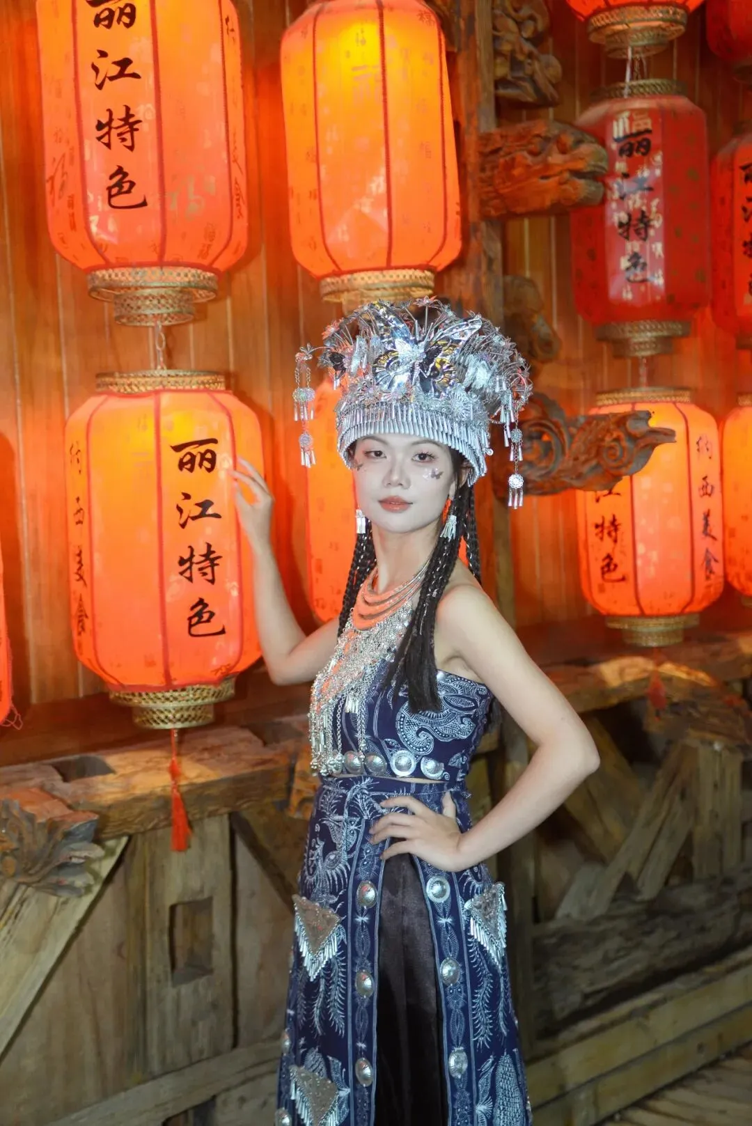 最先来到的是挂了一排红灯笼的地方,脚下是丽江特色石板路;摄影师指导我非常端庄的站在那里,2分钟不到拍好了。