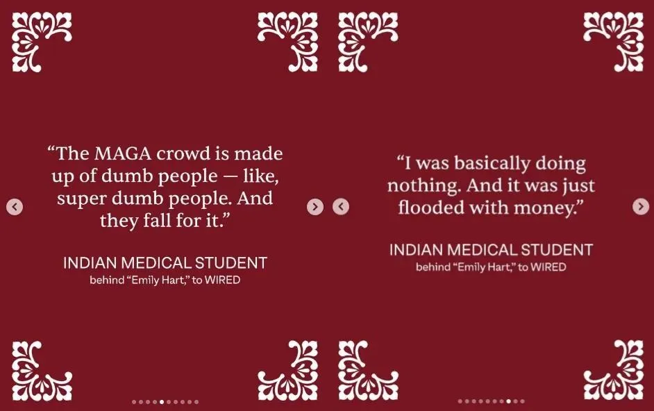 但讽刺的是,这个完美人设的幕后操盘手,既不是特朗普的幕僚,也不是美国的极右翼分子,而是一个远在印度北部、急需攒钱移民美国的 22 岁骨科实习医生。