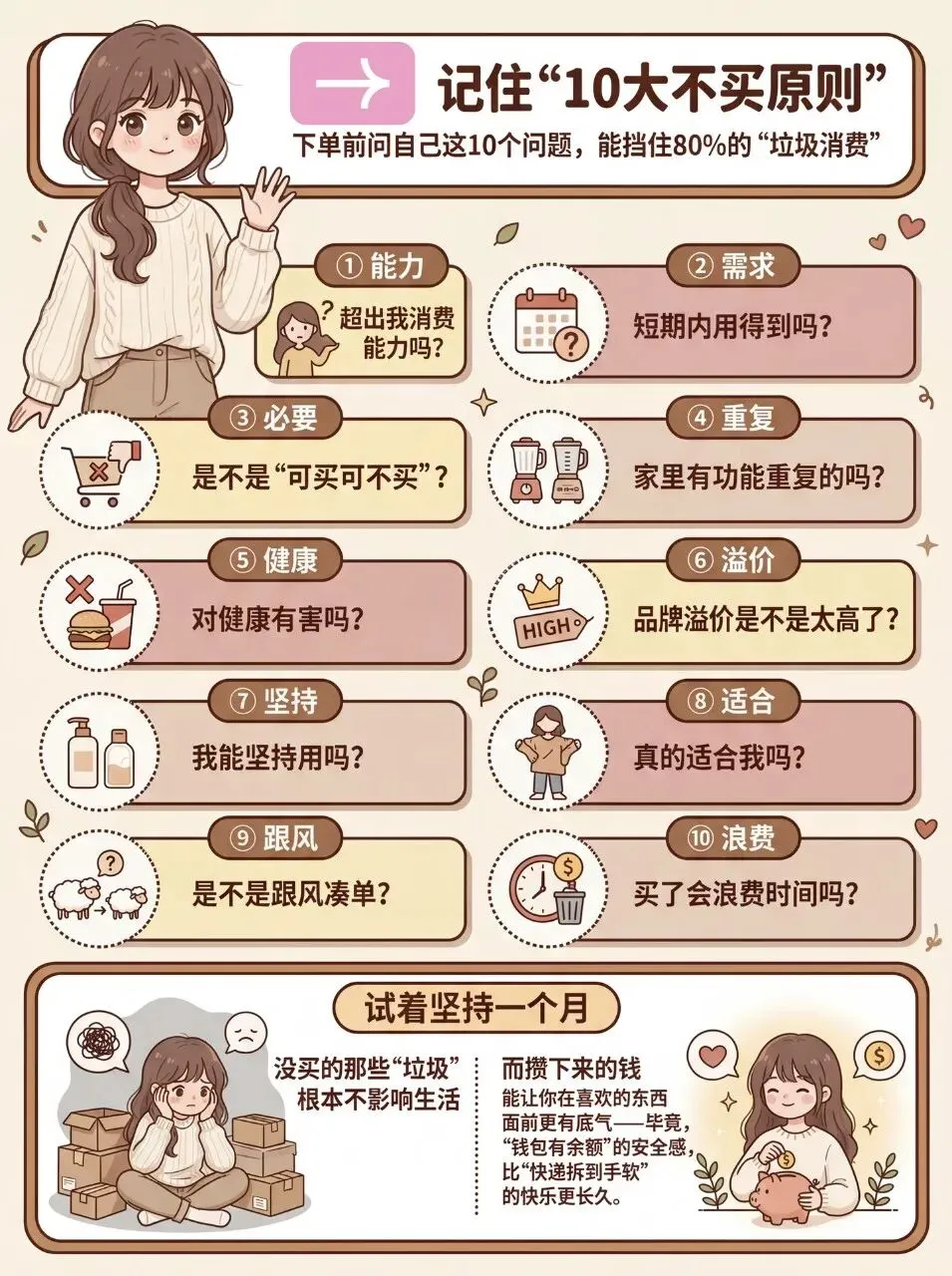 只买适合自己的东西,别跟风。比如有的人身材好适合穿紧身裙,而你是微胖体质,却跟风去买,只会暴露自己的缺点!可以参考这篇: