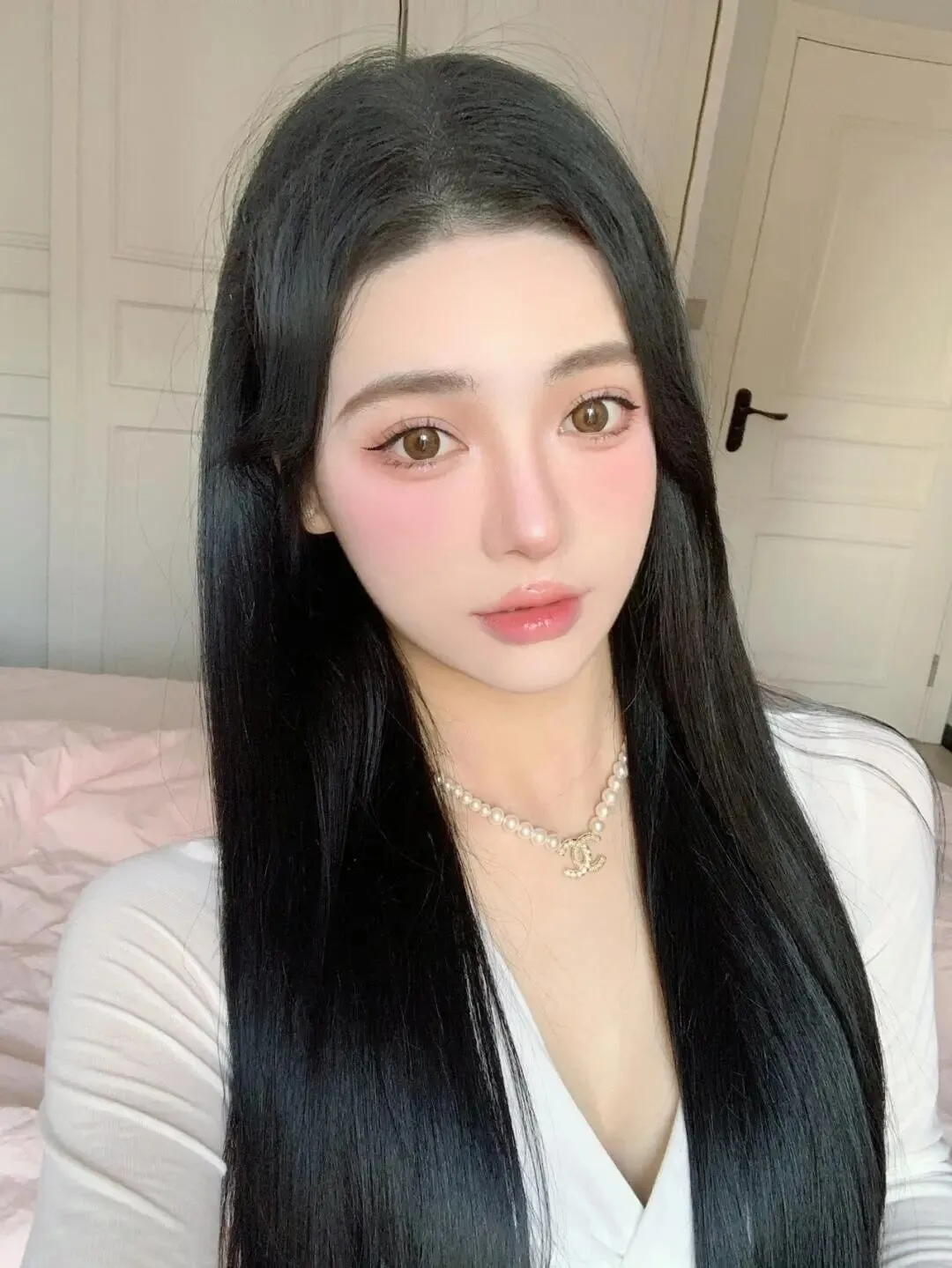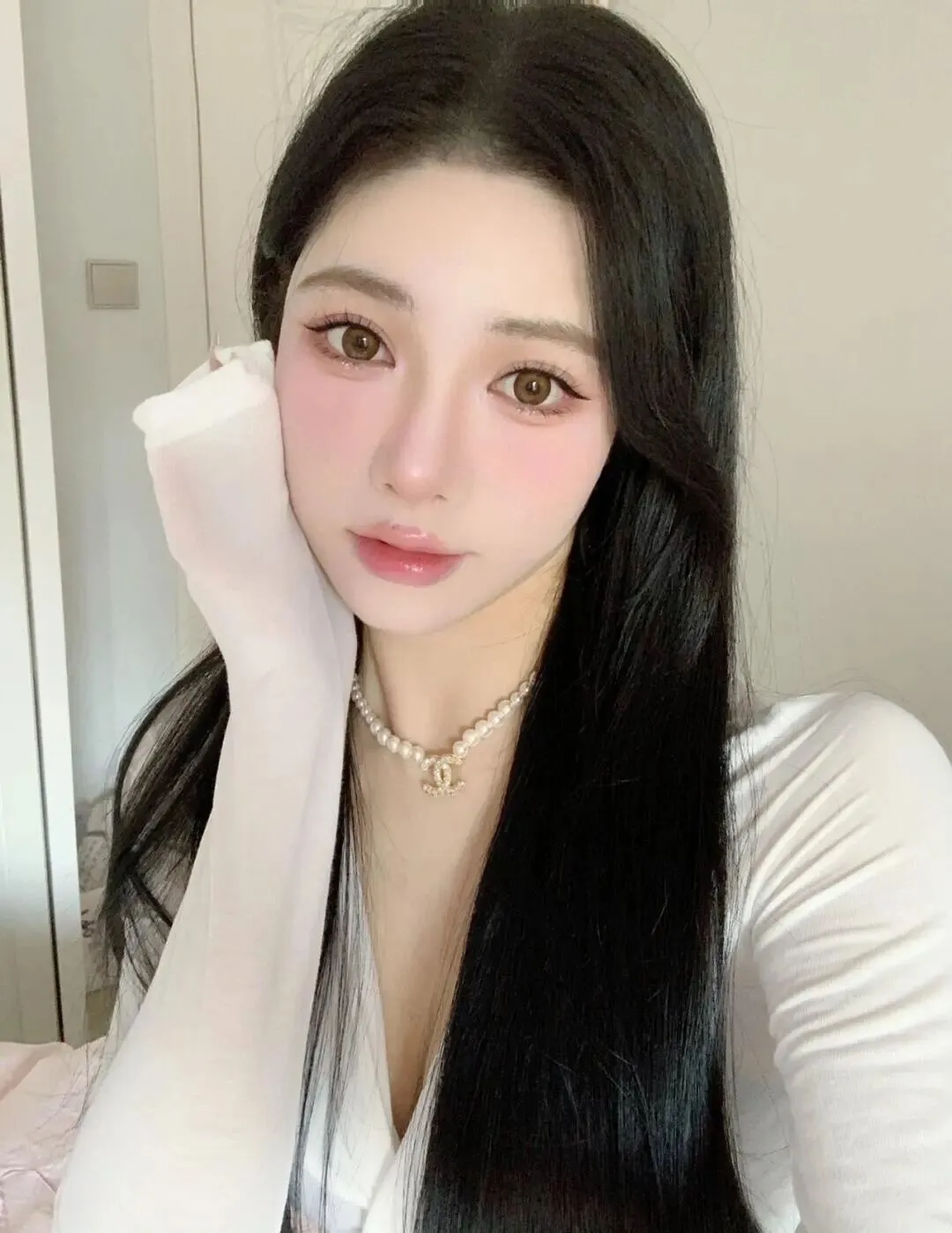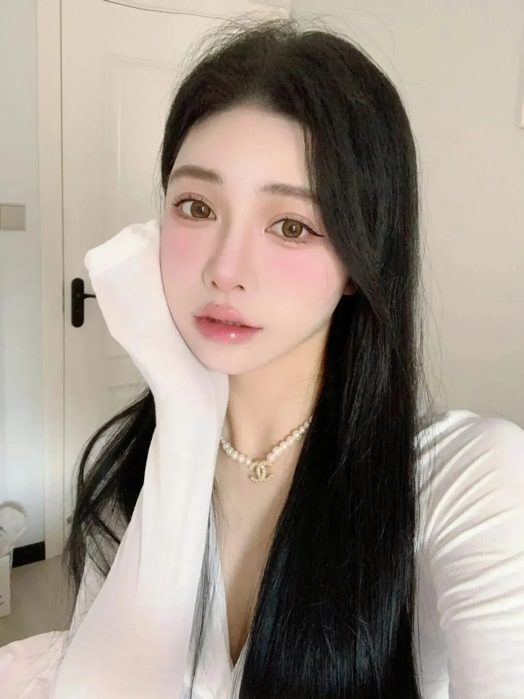 姿势方面,很多姐妹一面对镜头就手僵,不知道往哪放。其实最简单的动作往往最出片。比如用手轻轻托腮,或者用手背遮挡一部分脸颊。 手部动作遮挡脸颊是显脸小神器 ,还能增加画面的层次感。注意手指要放松,不要用力绷直,不然手背青筋暴起就不好看了。穿着简单的白色上衣,搭配珍珠项链,这种简约的配饰能增加精致度,又不会抢了脸部的风头。白色衣服本身就是最好的反光板, 白色上衣能自然给面部补光 ,让肤色看起来更白皙。头发可以随意散落在肩头,制造一点凌乱美,不要太整齐, 随意散落的发丝更能增加慵懒感