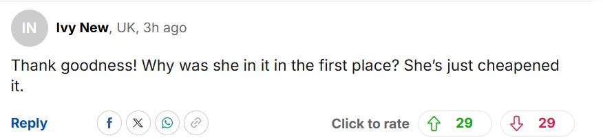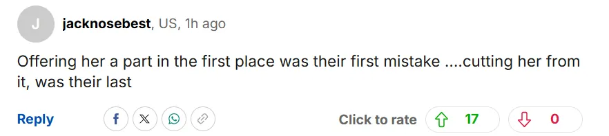 “真是谢天谢地。她本来就不该参演这部影片,她的加入只会拉低整部作品的格调。”