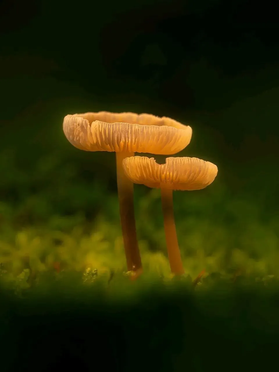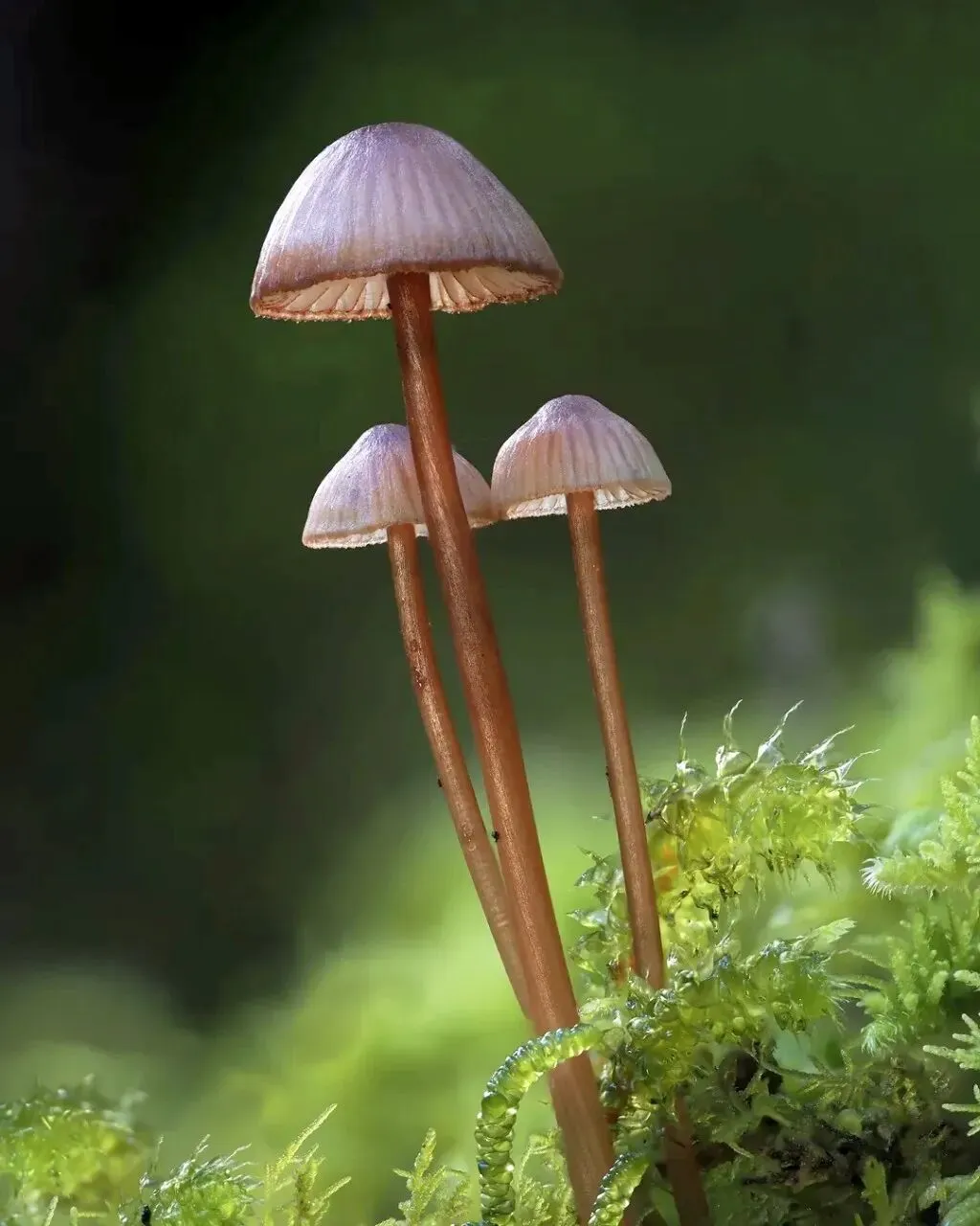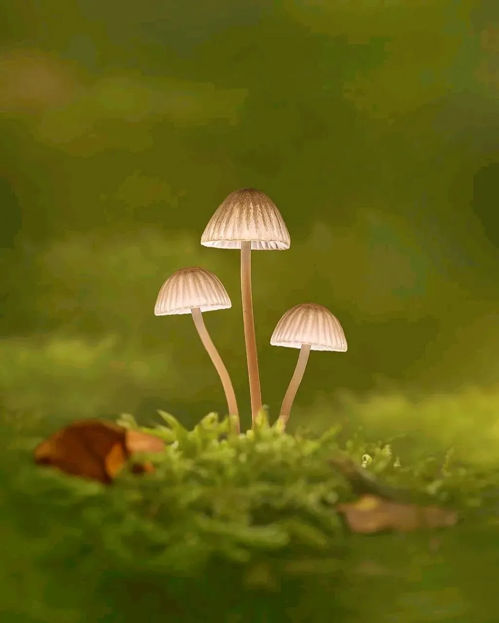 没有刻意的布景,只是一点点微光、一簇簇青苔,就让这些小小的菌子,活成了森林里的小精灵。