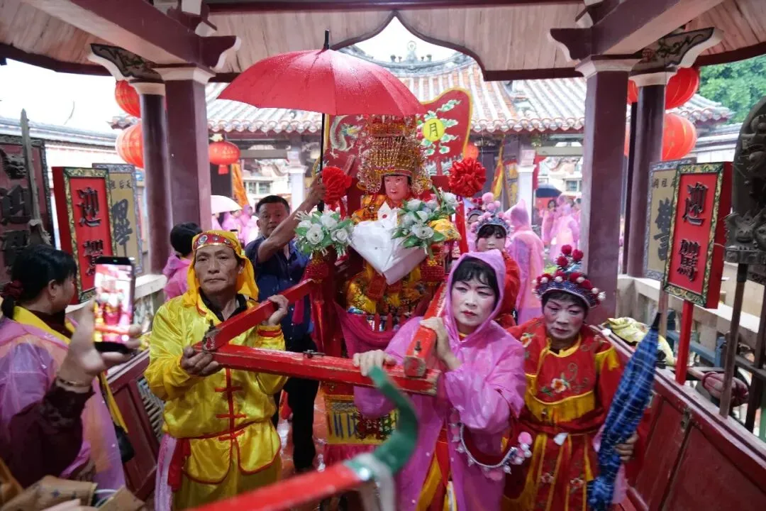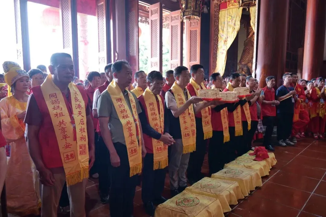 下午5时许,福建莆田秀屿区东峤镇田柄明德宫、玉皇殿、仙主宫进香团抵达天后祖祠。