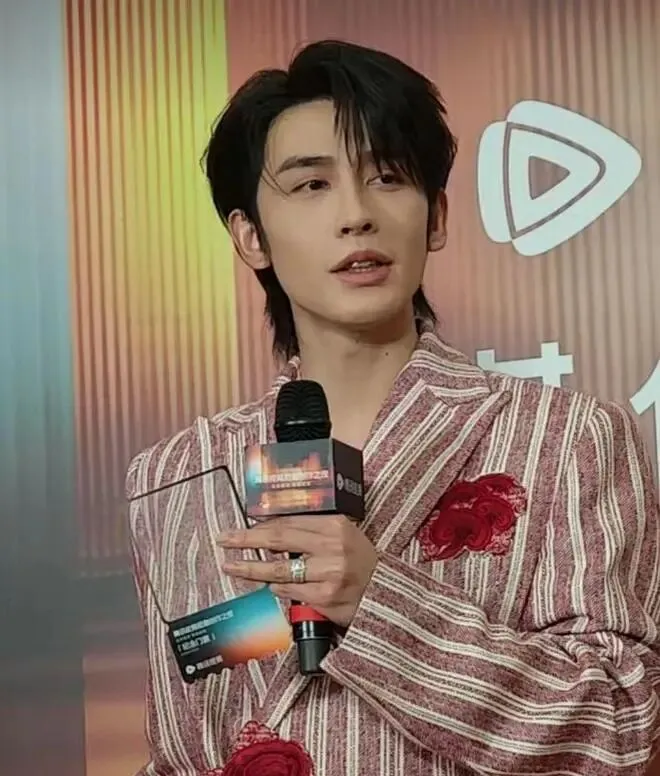 但脸部的一些细节,又让他的颜值迅速下降,比如外扩且有点肿胀的颧骨,让他的脸比短剧中大了一圈。