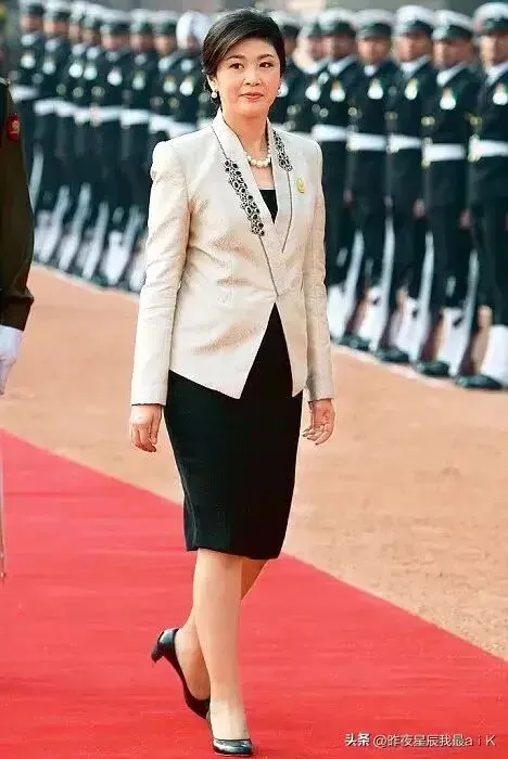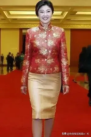 你看她上身穿红底金黄色凤富贵花图案点缀其间的半立领仿唐式四扣精致华丽华贵小礼服,饱满靓丽匀称落落大方华丽华贵气场大开全开,乌黑秀发左三右七分开,白皙而四方团圆国泰民安型精致青春面庞,弯弯的柳叶眉,黑亮神采奕奕的不大不小的眼睛眸子煞是好看,鼻翼略宽自带福相庄重贵气,笑容笑话全开,如饮甘泉甜蜜喜悦可人大方郑重庄重,不失身份地位尊贵加之,下身着质地贵尚可好浅黄色过膝束腿筒裙,正款款喜庆、喜色而动,款款深情喜中带悦神采飞扬喜上眉梢,正在向前方走来,右腿在前,左腿稍后,筒裙收囗及上面裙面因左右腿迈动而呈现的凸线褶皱,更尽显她美女女神身村健硕姣好、青春靓丽!给人以气质、美貌、魅力、知性并存的而火线十足全开,无法抵挡束手就降的美感震撼灾难其中,沦陷沉沦痴醉而不自已、不自醒!这样的美女哪里寻?她是天女仙女美貌般存在!她究竟是谁?!美得这么惊天动地!她不是别人,她就是泰国前美女政要总理英拉‘西那瓦。可能大多数英拉迷粉们都都知道知晓她!要说起来,据官方资料显示,英拉老家祖籍是我们中国广东省的!如此说来这位泰国的美女总理政要英拉,得算是半个中国人了,在她执政任泰国总理期间多次访华,为中泰友谊做出了不可磨灭的基础性历史贡献!让我们一暏领略她气质、美貌颜值、智慧、秀外慧中于一身一体的迷人万羡的独特美韵、魅力颜值个人风采吧!!!各位看官如喜欢我的文章麻烦关注我一下吧!后期精彩我们共享其中。持续呈现!