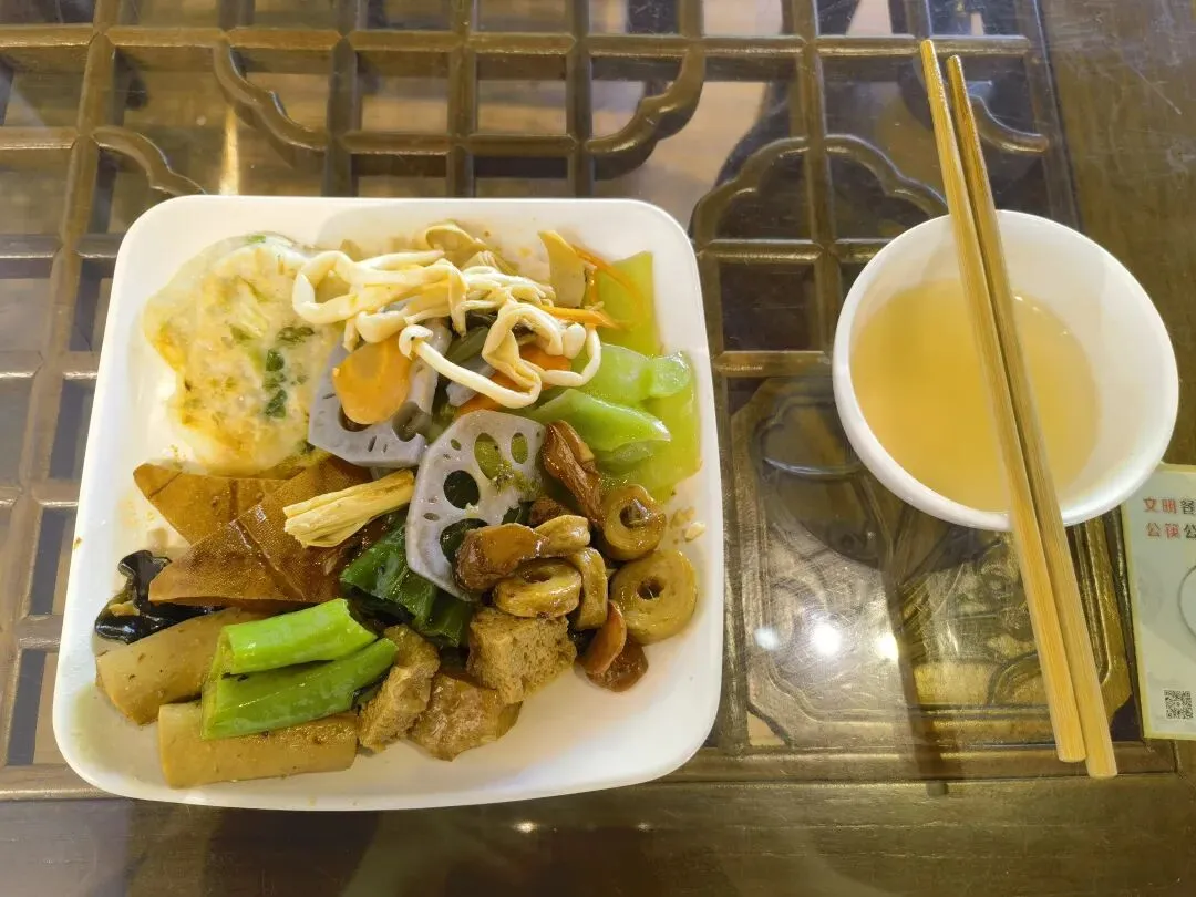 2.和xy碰面,一起在香积寺附近的素食餐厅吃饭。