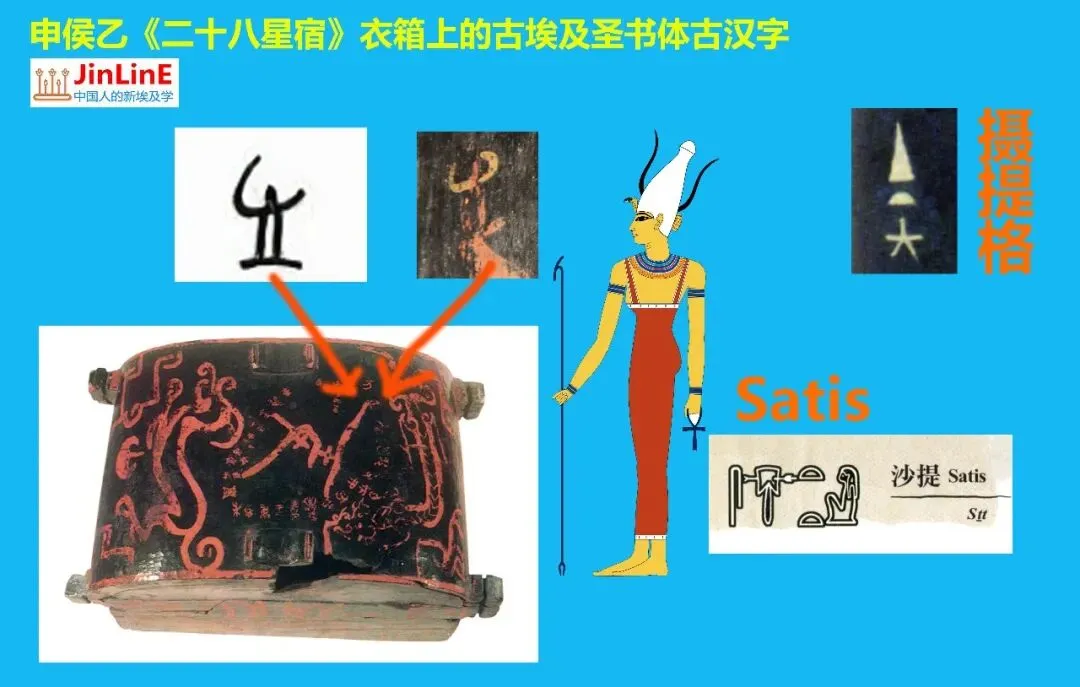 我在曾(申)侯乙漆箱上发现了古埃及沙提女神(摄提格)的圣书体文字!