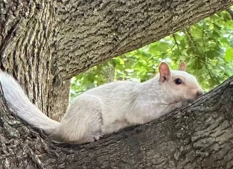 有一次,我在公园里遇到了一只白色的松鼠。它从树干上跳下来的一瞬间,我几乎愣了一下。在一片熟悉的灰褐色里,这样的颜色,