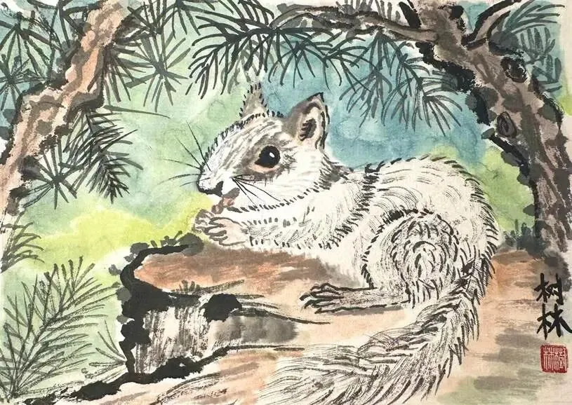 在中国画里,松鼠并不是最常见的主角。但它们灵动、敏捷,带着一种很直接的生命力。当它们进入画面时,总会让画变得更轻、更亮。
