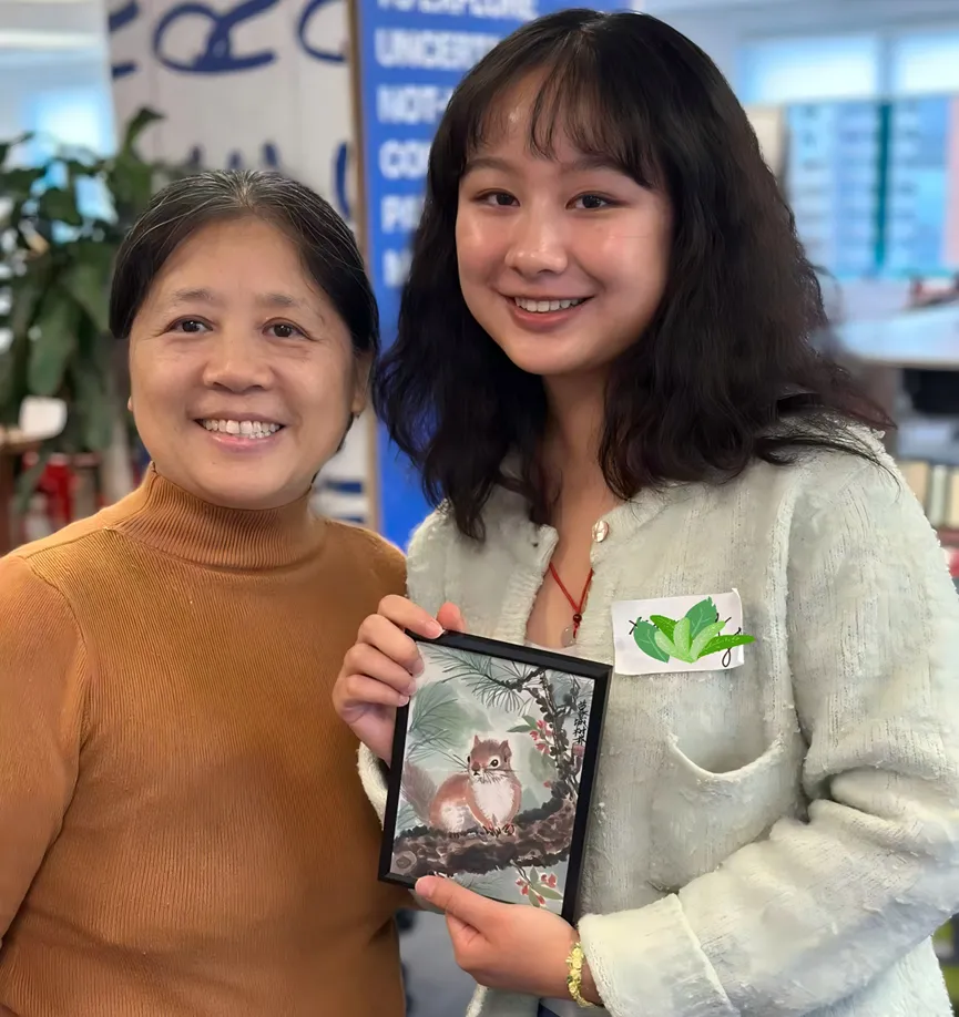 还有一幅作品,是松鼠和荔枝。是在夏季完成的。城市进入冬天,空气很冷,在圣诞节前一天,节日的气氛很浓,人们都在选一个好的礼物给家人。这幅画也被一位当地收藏者带走。