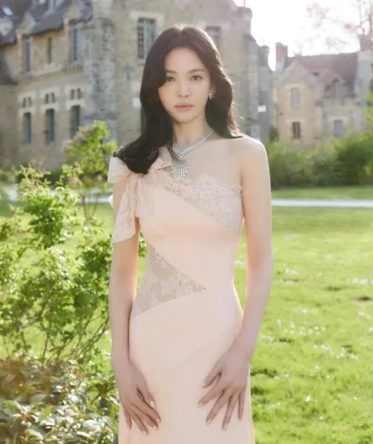 一身浅粉色蕾丝拼接礼服质感细腻,低饱和的色调温柔耐看,淡淡的微醺妆容衬得肤色通透红润,整体状态细腻又精致。