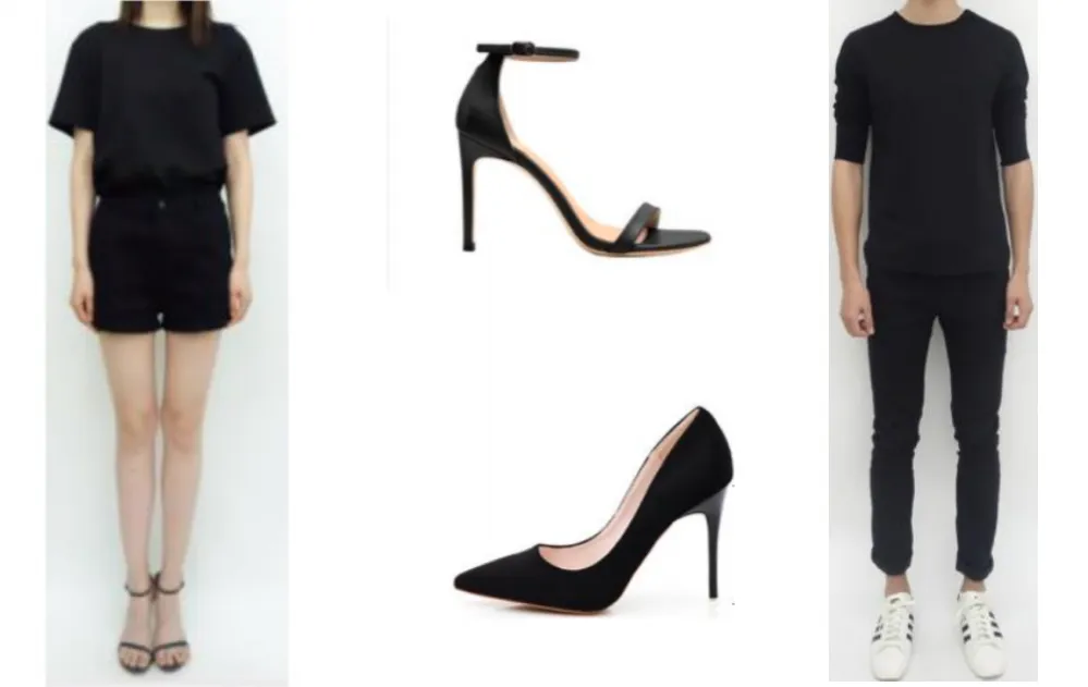女生:T恤或吊带+短裤,无防水台高跟鞋(8cm以上)