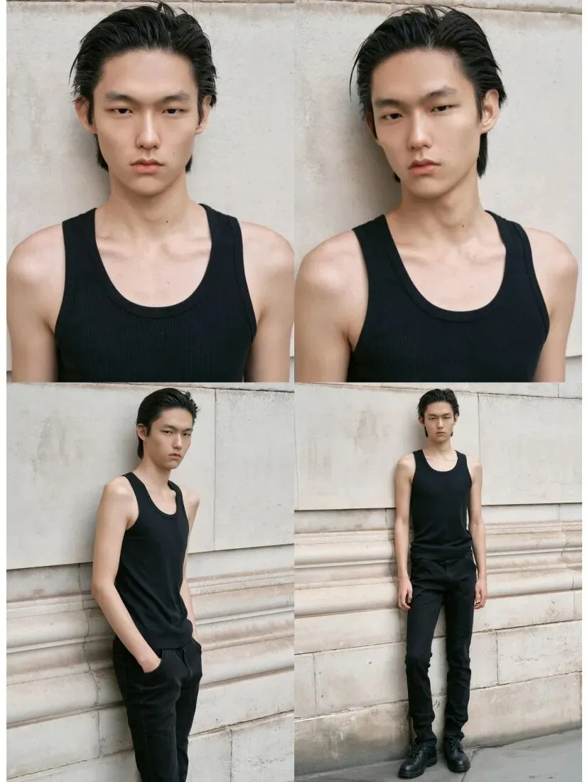 男生:黑色或白色T恤+修身长裤