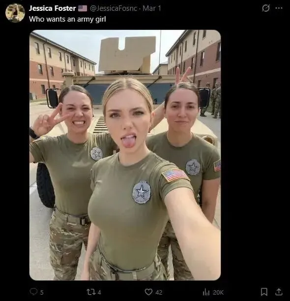 而另一位狂揽百万粉丝的AI假女兵Jessica Foster,更是大肆吸金后,直到被《华盛顿邮报》记者报道曝光,Meta才终于删了她的号