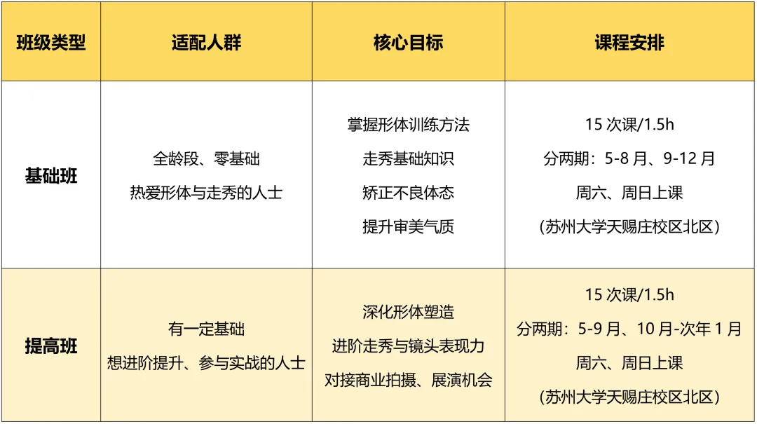 为响应国家美育浸润行动战略,依托苏州大学艺术教育优势资源,开设形体塑造与时尚走秀课程,组建模特社团,打造全龄段专业化阶梯式时尚美育平台,构建从形体训练、表演实践、兴趣培养至职业发展的完整成长体系,提供专业教学、实践展演与资源对接服务,立足苏州、辐射长三角,助力时尚美育发展。