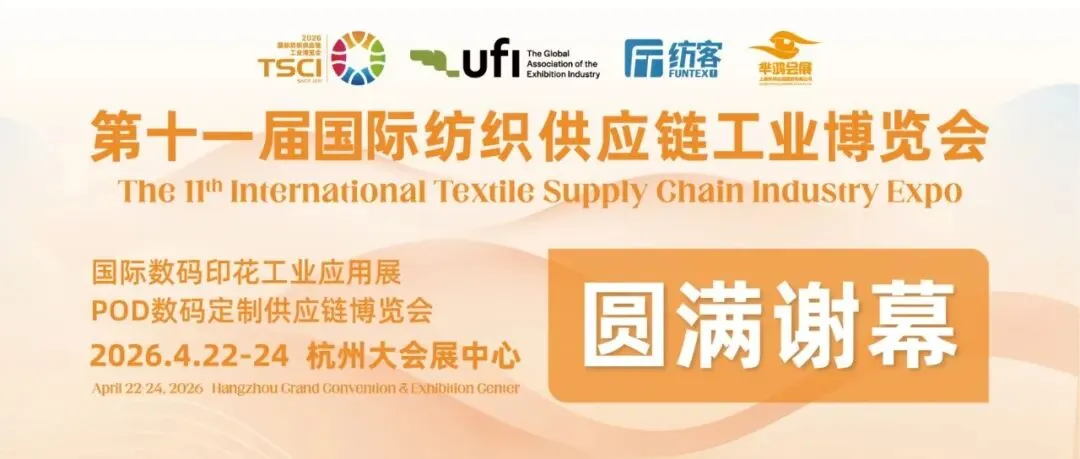 4月24日,随着最后一批观众有序离场,TSCI 2026第十一届国际纺织供应链工业博览会、TSCI国际数码印花工业应用展、POD数码定制供应链博览会,在杭州大会展中心圆满落下帷幕!