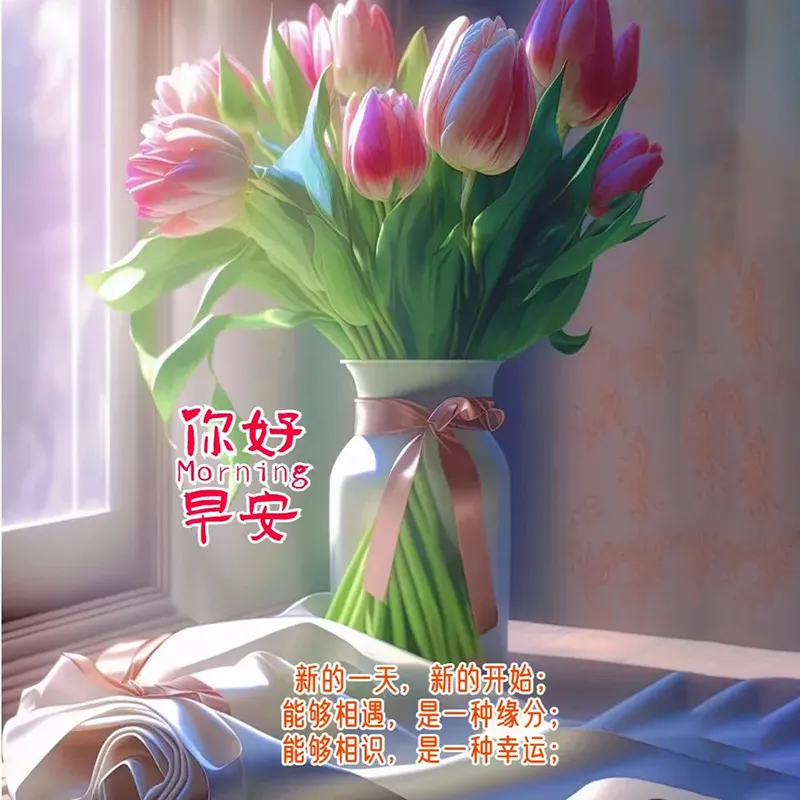 8,清晨的第一声问候,恰似细雨滋润心田,携来美好与祝福。愿你在新的一天中,充满动力与信心,收获欢笑与满足。早安,愿诸事安好!