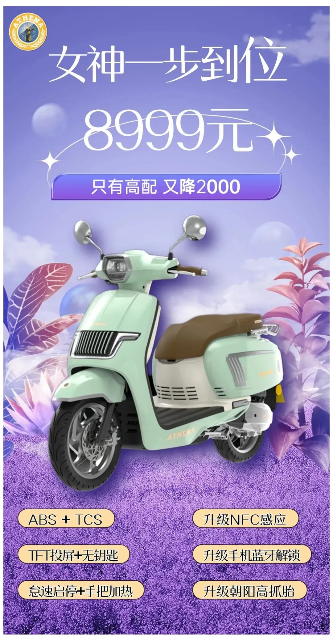 这次不是简单做促销,而是直接调整产品策略。雅典娜女神150原本高配版指导价为10980元,现在一步降到8999元,差不多便宜了近2000元。与此同时,低配版本也不再保留,后续只卖这一款高配车。