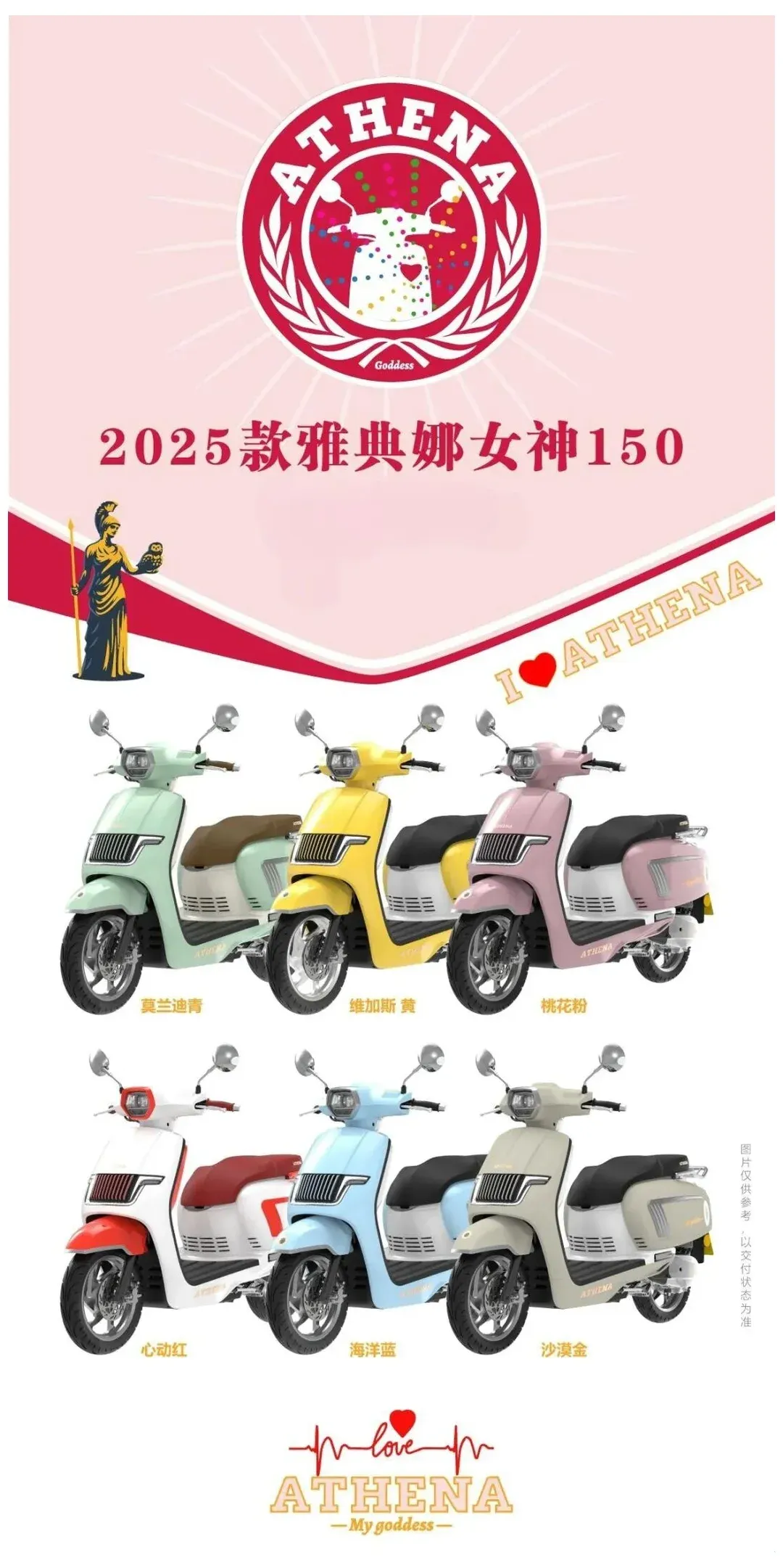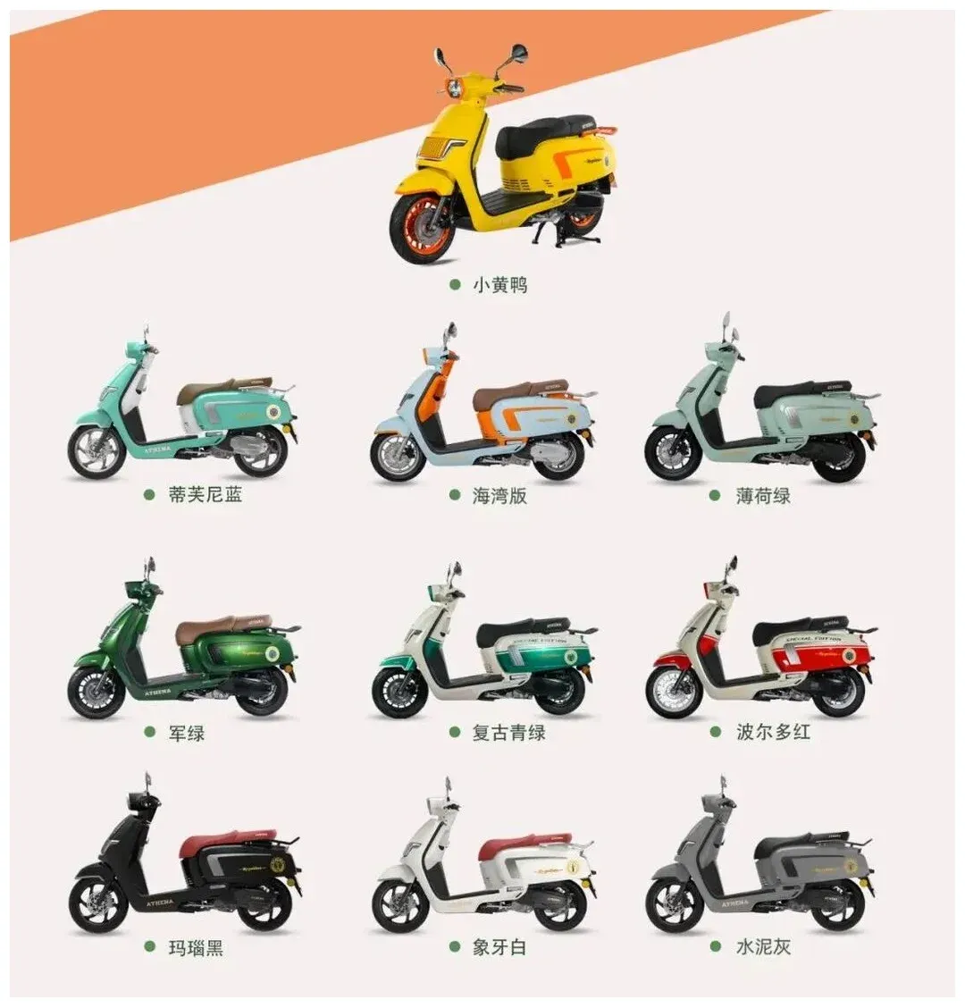当然,它吸引人的不只是便宜。复古踏板本来就带一点审美和情绪价值,很多人买这类车,并不想每天骑一辆只负责“到达”的工具,而是希望它在代步之外,也能多一点风格表达。雅典娜女神150这次又新增了6款新/套色,加上原有的10种配色,现在一共来到16种配/套色。在同价位里,给到这么多外观选择,本身就是在照顾不同用户的审美偏好。