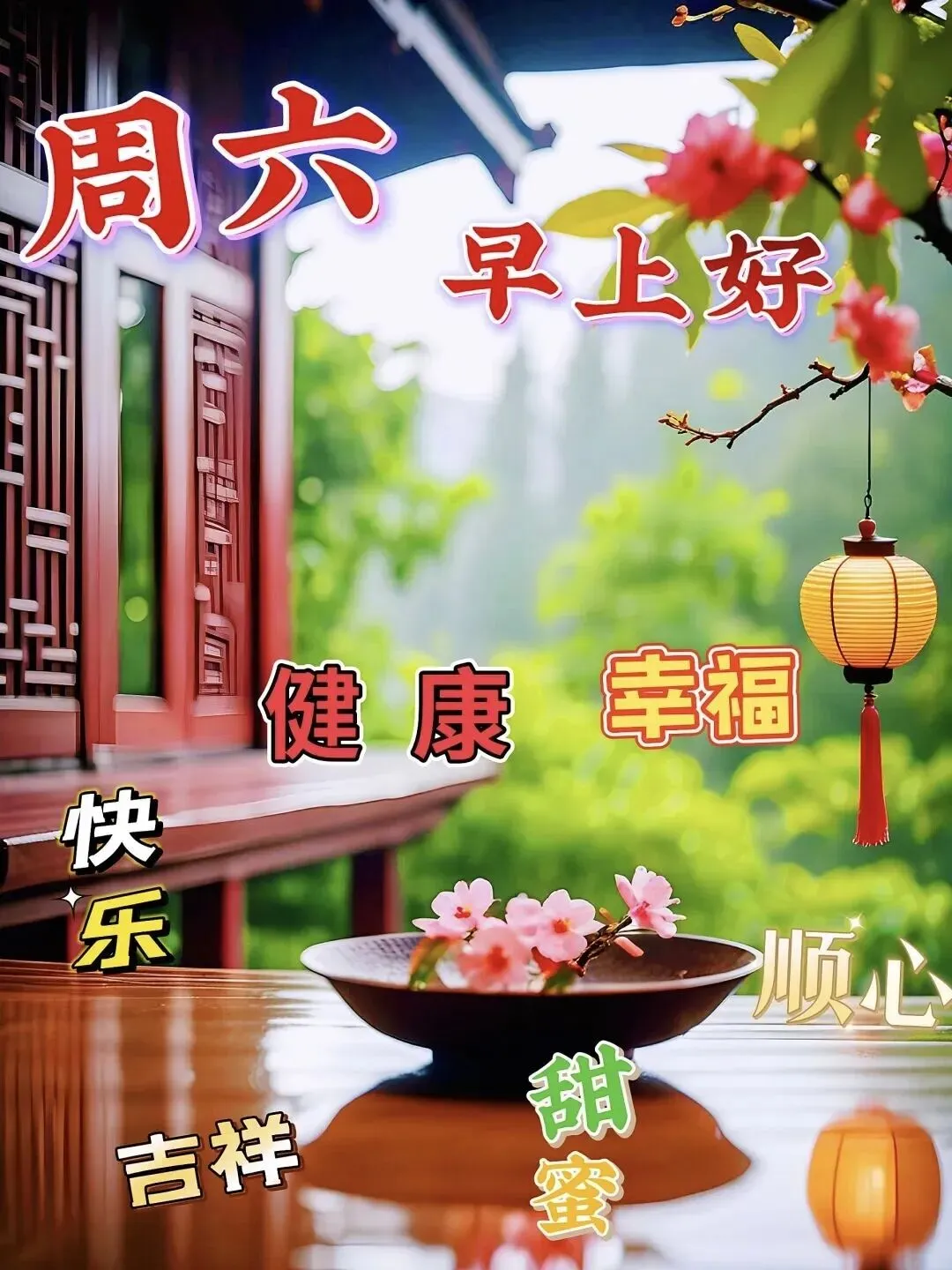 1. 周六早安☀️!告别忙碌的工作日,迎来轻松惬意的周末时光。愿你放下疲惫,放慢脚步,好好享受这悠闲的一天🍵,吃喜欢的东西,见想见的人,心里有光,眼里有笑,平安喜乐,万事顺心✨。