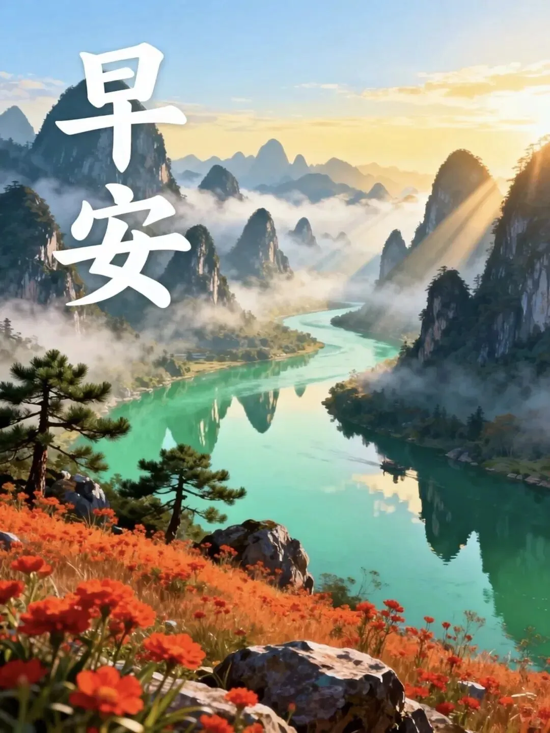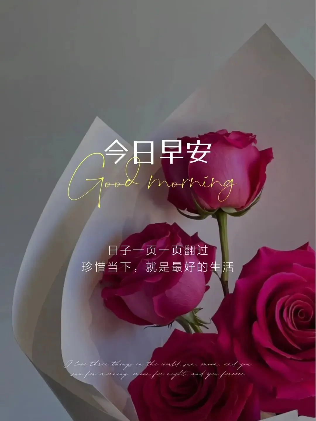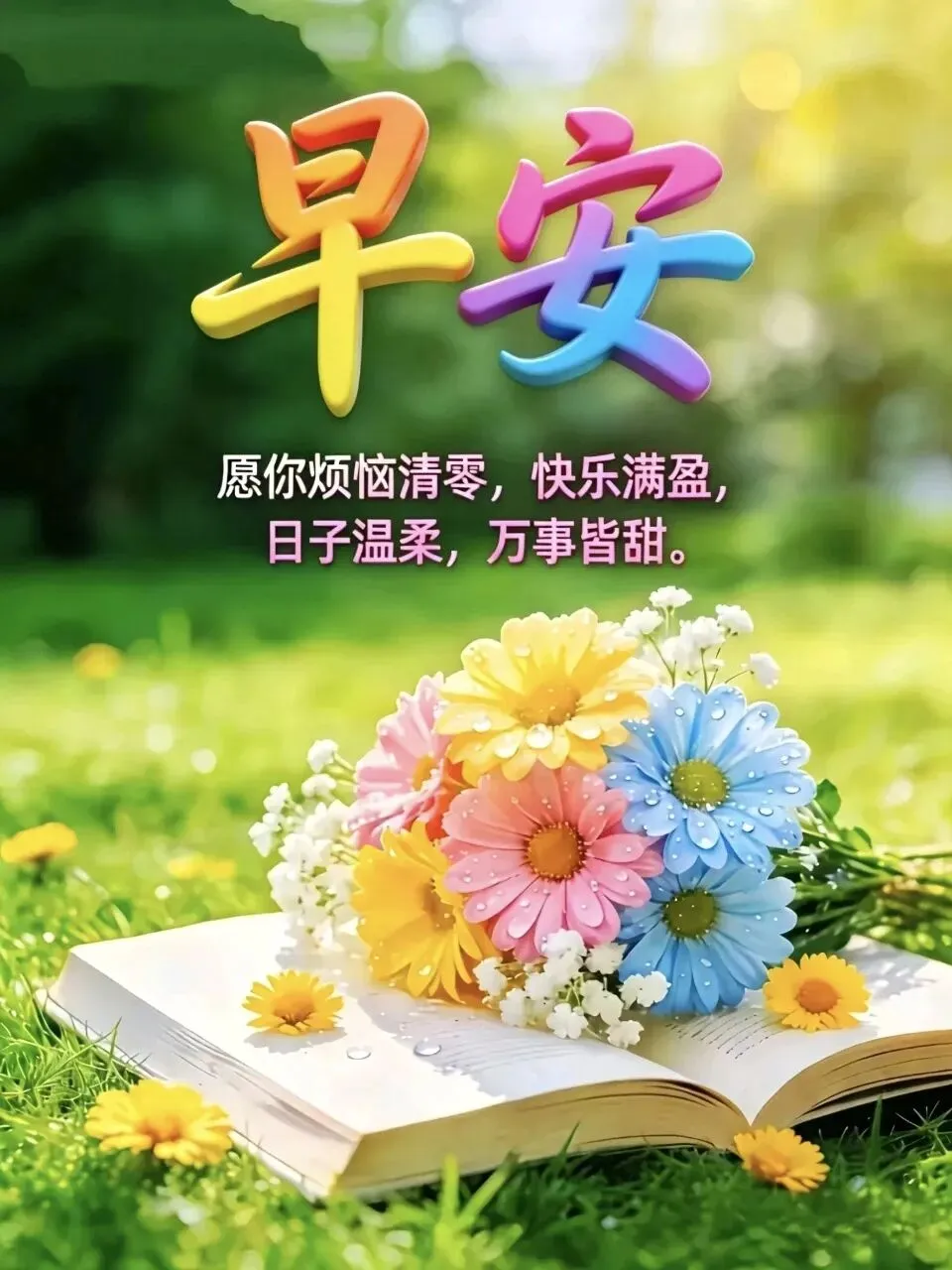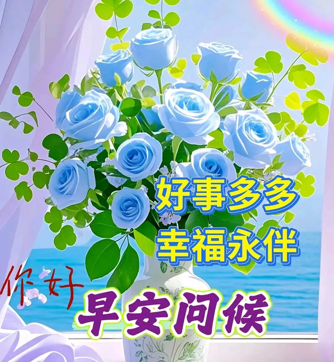 13. 早安呀~周六快乐🥰!愿清晨的微风带走忧愁,温暖的阳光带来好运。生活不必太匆忙,心安便是归处🌿。愿你三餐有味,四季有暖,心中有喜,身边有爱,岁岁皆平安💐。