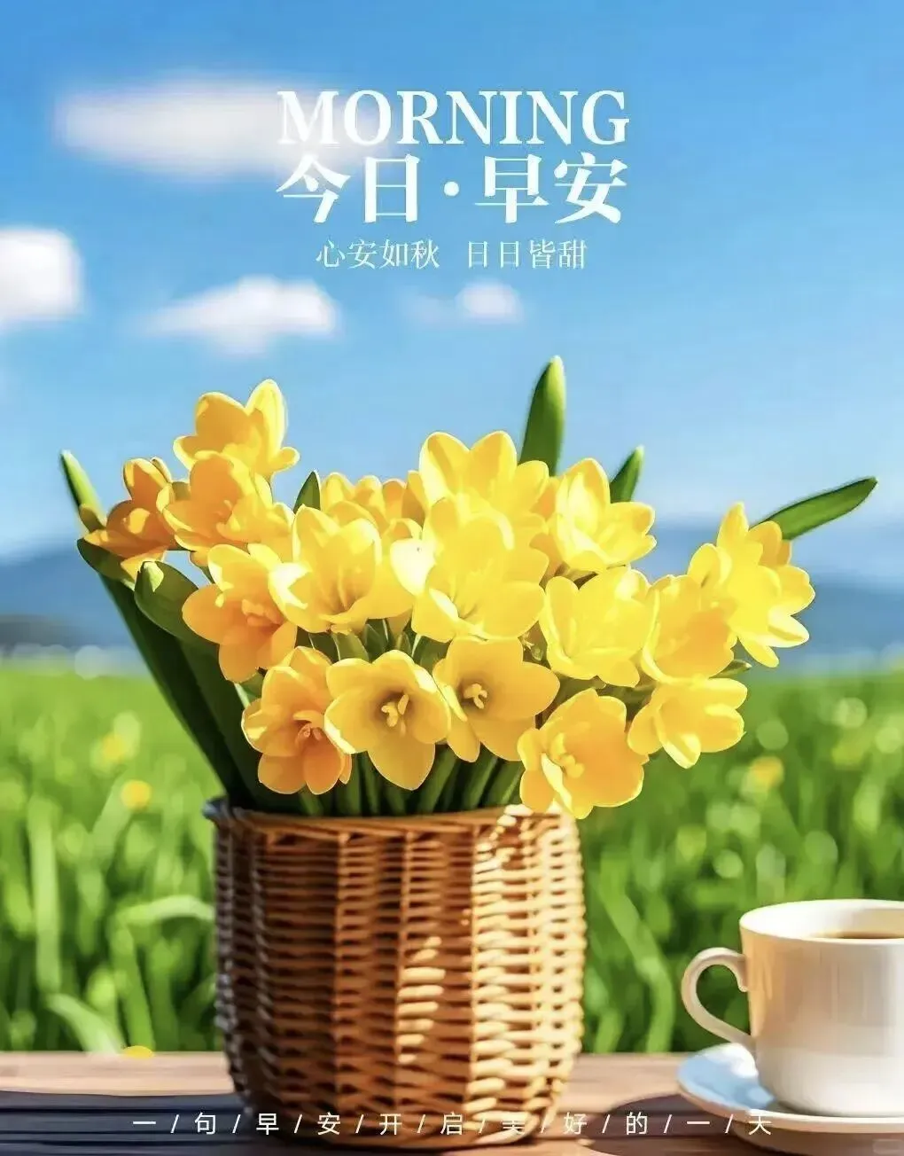 11. 早安~美好的周六开始啦🌿!愿你带着微笑迎接晨光,带着温暖拥抱生活。不必追赶时间,不必勉强自己🌸,悠闲自在,随心而行。愿好运一路相伴,烦恼通通走远,幸福常伴身旁💛。