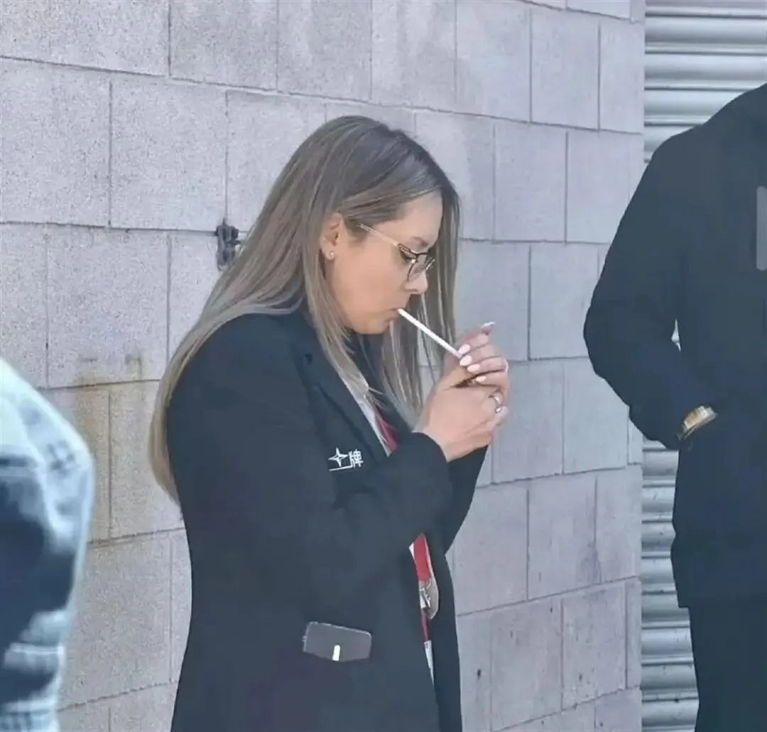 没有赛场精致着装,没有专业执裁正装,一身便装的她,抽烟动作娴熟老练、行云流水,吞云吐雾的状态随性放松,和赛场上一丝不苟、清冷端庄的裁判形象,形成了天壤之别。