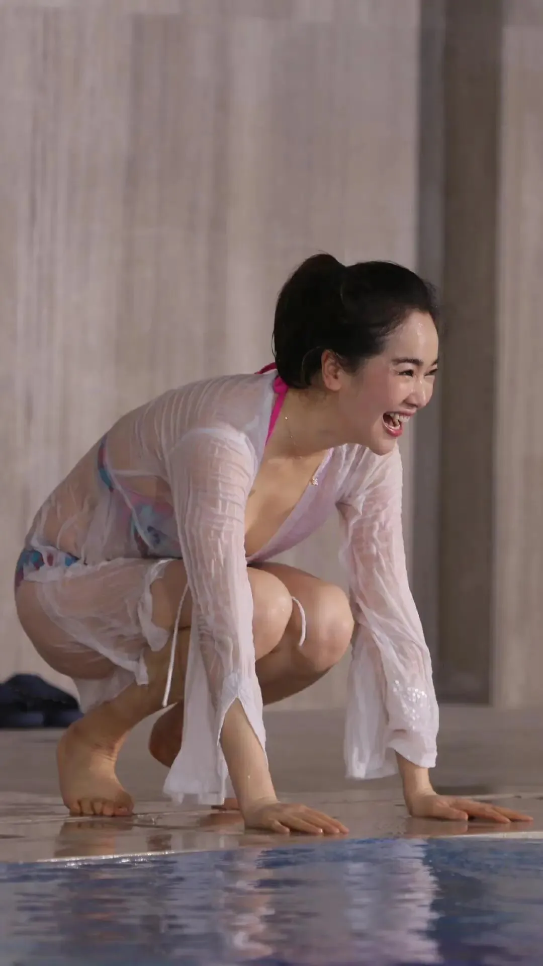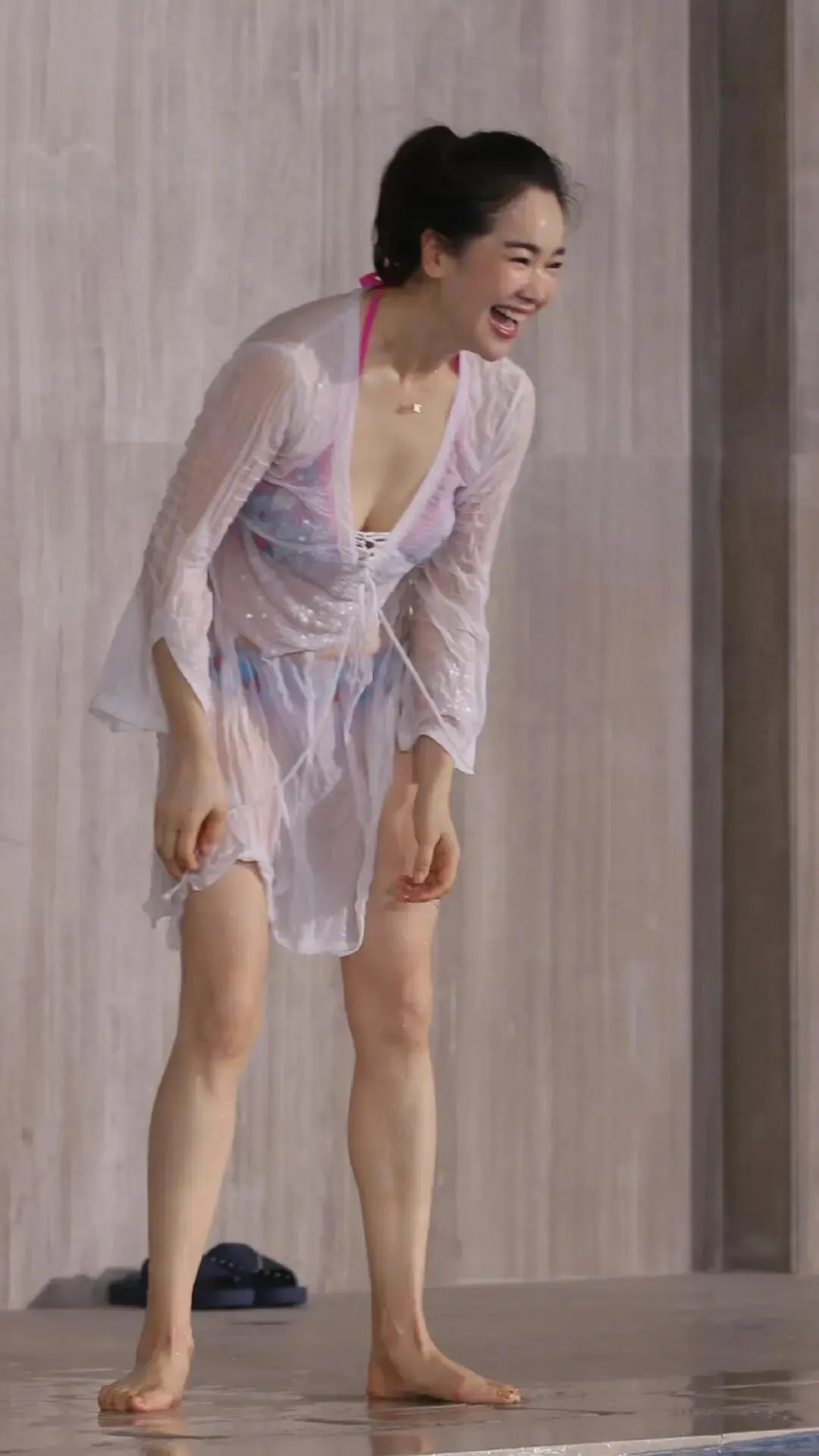 画面里,48岁的左小青穿着碎花比基尼,外搭那件薄如蝉翼的透视罩衫。被水打湿后,衣料紧贴肌肤,曲线若隐若现。最绝的是她往水池边那么一站,笑容放松自然,浑身散发着这个年纪女性特有的韵味——成熟、自信、游刃有余。