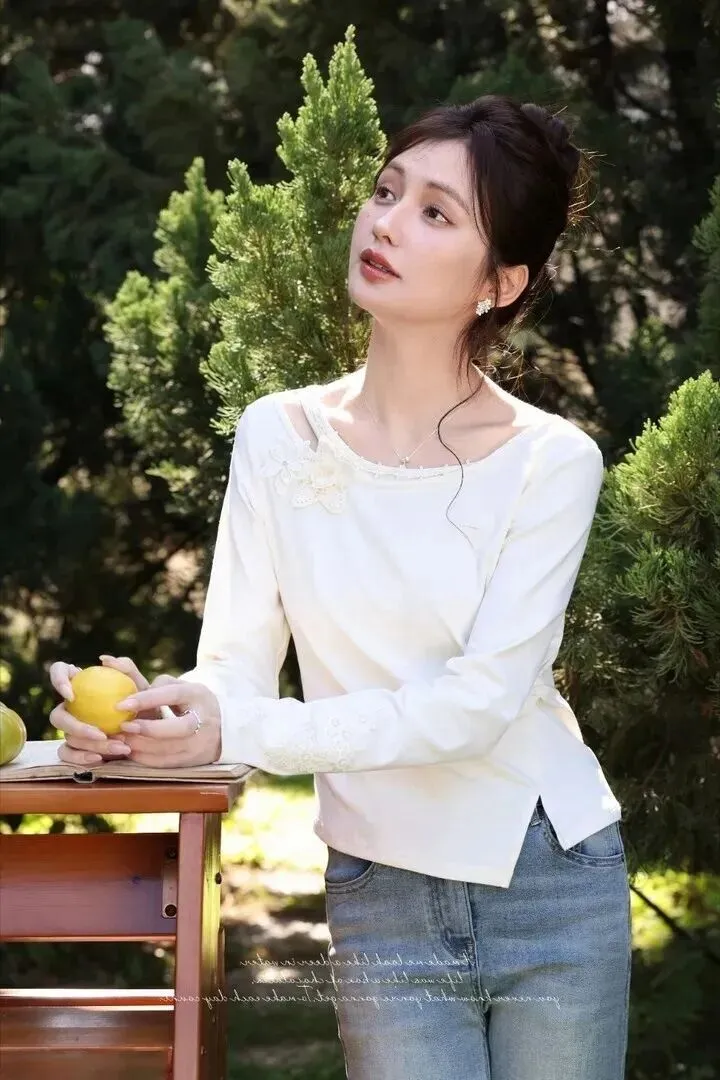 以米白色针织衫做斜领设计为主,配合直筒牛仔裤制成组合。不显繁杂的情况下,简约的风格也被形成。领口那圈的蕾丝花边、刺绣小花给基本款增添了一些精致感。小仙女手持一块柠檬在欣赏远方景色的时候感觉到一种特别的舒适感,阳光照射到一棵草上的感觉也十分惬意。一套穿着去咖啡馆坐一整天,简直太惬意了。