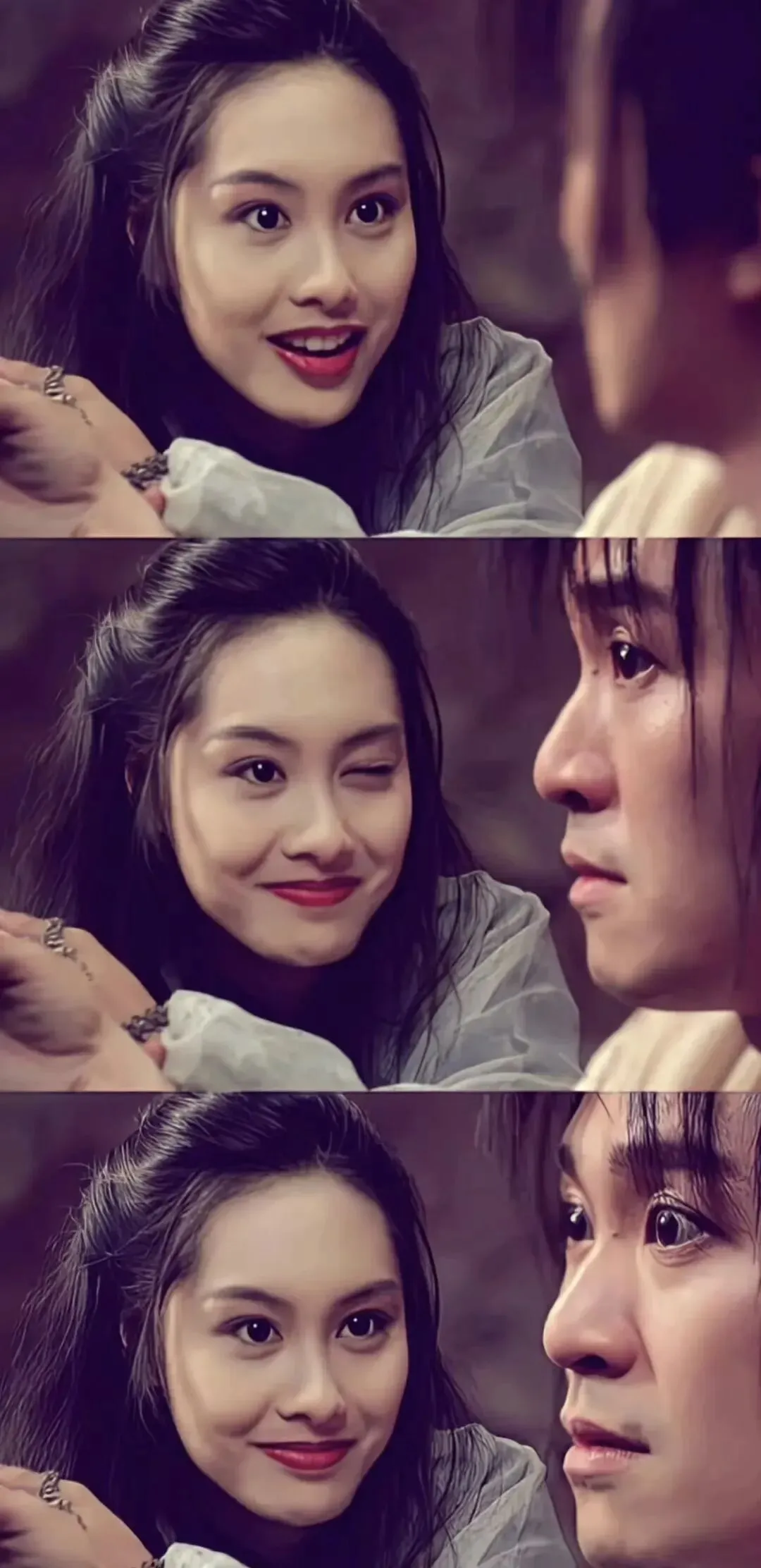 朱茵在《大话西游》中饰演紫霞仙子时的一个眨眼镜头,因其深情与灵动,成为华语影史公认的"一眼万年"级经典画面。