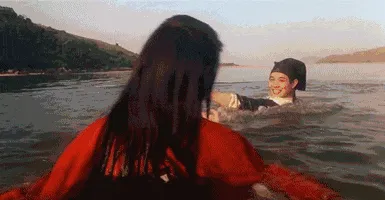林青霞那一身红衣从水里冒出来仰头喝酒那幕,真的很迷人,长发飘着,酒壶拎着…