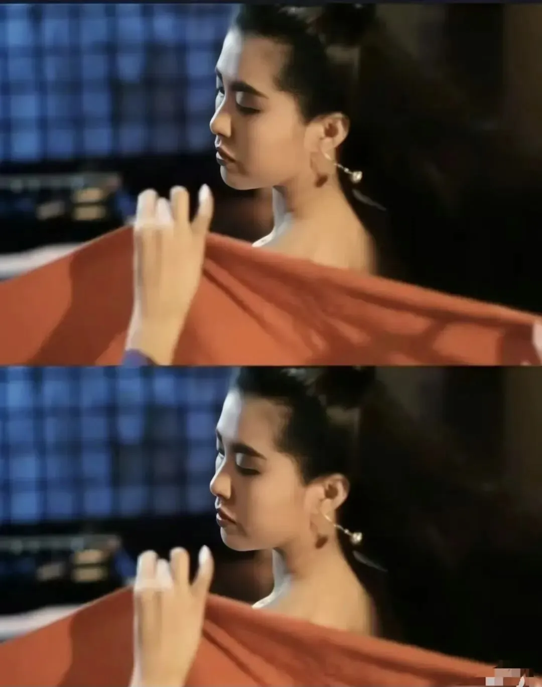 《倩女幽魂》里王祖贤出水穿衣,甩头回眸,纤纤玉指穿过红色衣衫,雪白的肌肤透过轻纱散发着缕缕风情无意间颠倒众生,被誉为“东方美学的神级呈现”