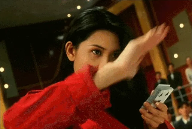 一袭红衣如烈焰,红唇轻咬扑克牌,眼神坚毅而迷离。当邱淑贞在《赌神2》中翻身上赌桌,那一刻,时间仿佛凝固,江湖的喧嚣与赌场的浮华,都沦为这抹红影的背景