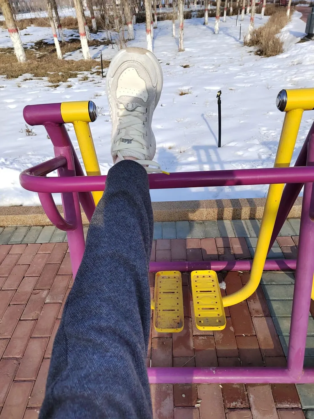 昨天还在窗口值班,今天休息了,就睡了一个自然醒,早晨9点半才起床,吃完早饭,又把昨天带回家的工作服洗好,不能耽误明天上班用。看外面阳光正好,就穿上厚衣服出门散步。 白天晒太阳等于给晚上攒褪黑素,让晚上睡得更好。我因为上了20年的夜班,生物钟有点乱,到现在都有晚睡的毛病,晚上得凌晨1点左右才能睡着,一直都在下决心调整成早睡早醒的习惯,可是晚上就是睡不着,非得熬到那个时候,闹钟也买了,睡前手机放客厅,看着书也是睡不着。枣仁安神膏也吃着呢,好像有一点效果。最近这段睡眠改善了 一些,我感觉是每天出门散步晒太阳和练了几天金鸡独立。我们单位搬了新建好的医院以后,我的工位就见不上太阳了,四面都是墙,进房间的门是通向走廊的,通往里间的门每天开着,可以透点光过来,但是里间办公室的窗户玻璃上,贴了磨砂效果的窗户纸,还是透不进来阳光。办公室在一楼,在工作的空隙,我就跑出去5分钟站着大厅里面见见阳光,然后再回去继续工作。休息在家的时候,我每天都出门散步,尽量快走锻炼肺功能。今天上午11点出门到门口的小广场走路晒太阳 ,这个点的太阳正好,广场的草坪 上还有一些没化完的积雪,围着步道走了一圈,只遇到几个人在广场里散步聊天 。我又想着去全民健身中心那里看看,就往那边走。到了一排健身器材那里,开始玩轮胳膊那个,两个胳膊各轮了100下。看到旁边清风公园的树林里,有一个人在练习舞蹈,自己在不停的跳。我也试试把脚跷上横杆试试能不能上去,穿着厚裤子也跷上去了,左右腿各练习了一会。又进到围栏里面,也有很多的健身器材,挑几个玩了一会,那里面的地比较平,我就又在里面练习站金鸡独立,正站着,有两个老年人也来锻炼。过一会我看时间也不早了,就准备回家,然后看了一眼小树林里面练跳舞的女人还在跳着,真是让我有点佩服。快步往回走,路过超市买了一板鸡蛋回家,心情还是很愉快的。回家把泡好的银耳用砂锅炖上,下午去看我妈妈,给她带一碗银耳莲子红枣羹过去。文字不够图片凑,哈哈。