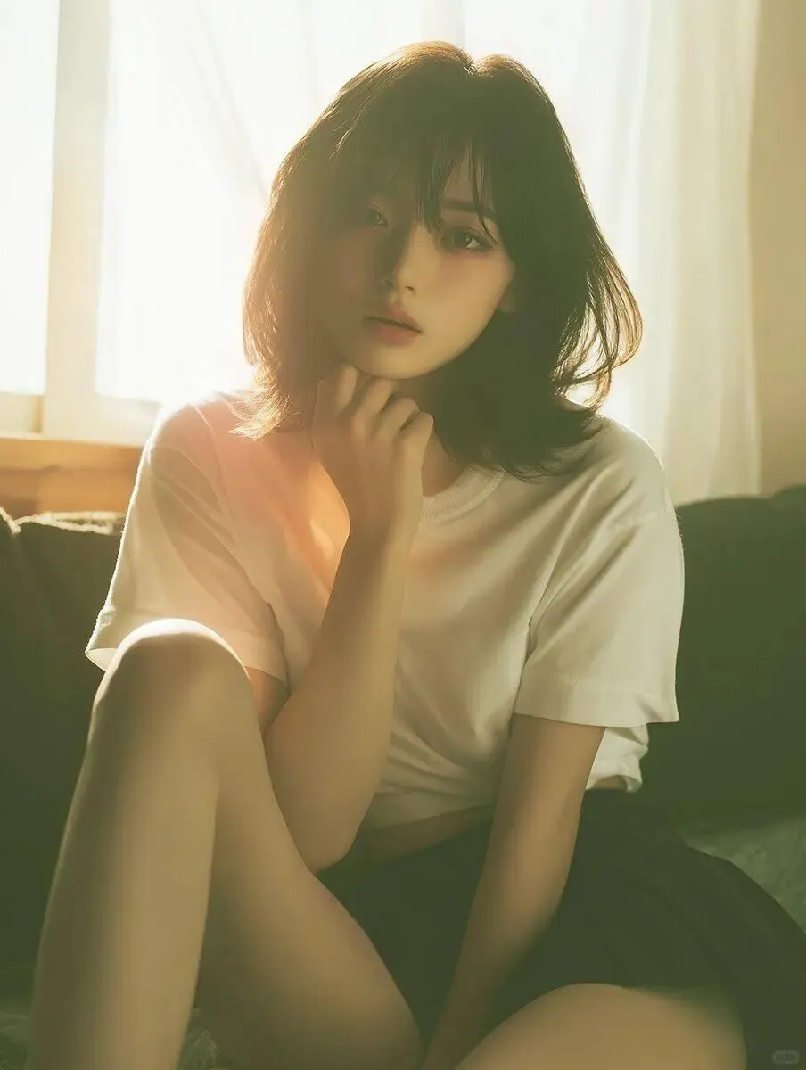 看看这几张照片,之所以显得温柔高级,全靠光线的运用。不要害怕强光,要学会利用逆光和侧逆光。比如第四张图,选择在落日时分,让阳光从身后打过来,发丝会形成金色的轮廓光,整个人都在发光。室内拍摄时,像第一张和第三张那样,靠近窗户,让自然光柔和地洒在脸上,皮肤质感会显得通透细腻。避免正午的顶光,那会让黑眼圈和法令纹很明显。清晨或傍晚的黄金一小时,是出片率最高的时段,暖色调的光线自带滤镜效果,连后期调色都省了一半力气。