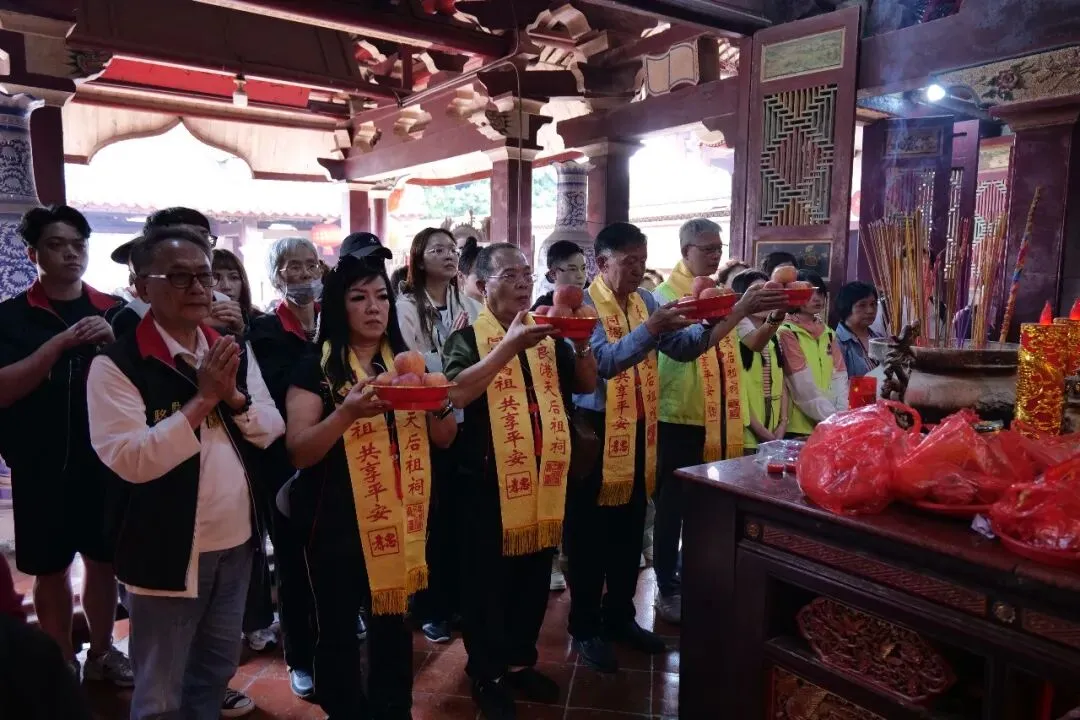 上午9时30分许,台湾台中六宝林家府天上圣母老四妈进香团抵达贤良港。祖祠董事会董事长林自弟、副董事长黄金象对进行进香团的到来表示热烈欢迎,并陪同进香团向妈祖行庄严的三献礼仪式。