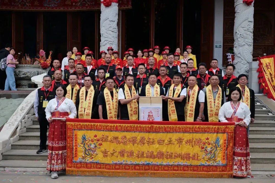下午2时30分许,福建莆田秀屿区笏石镇大坵白湖宫进香团来贤良港谒祖进香。祖祠董事会副董事长黄金树对进行进香团的到来表示热烈欢迎,并陪同进香团向妈祖行庄严的三献礼仪式。