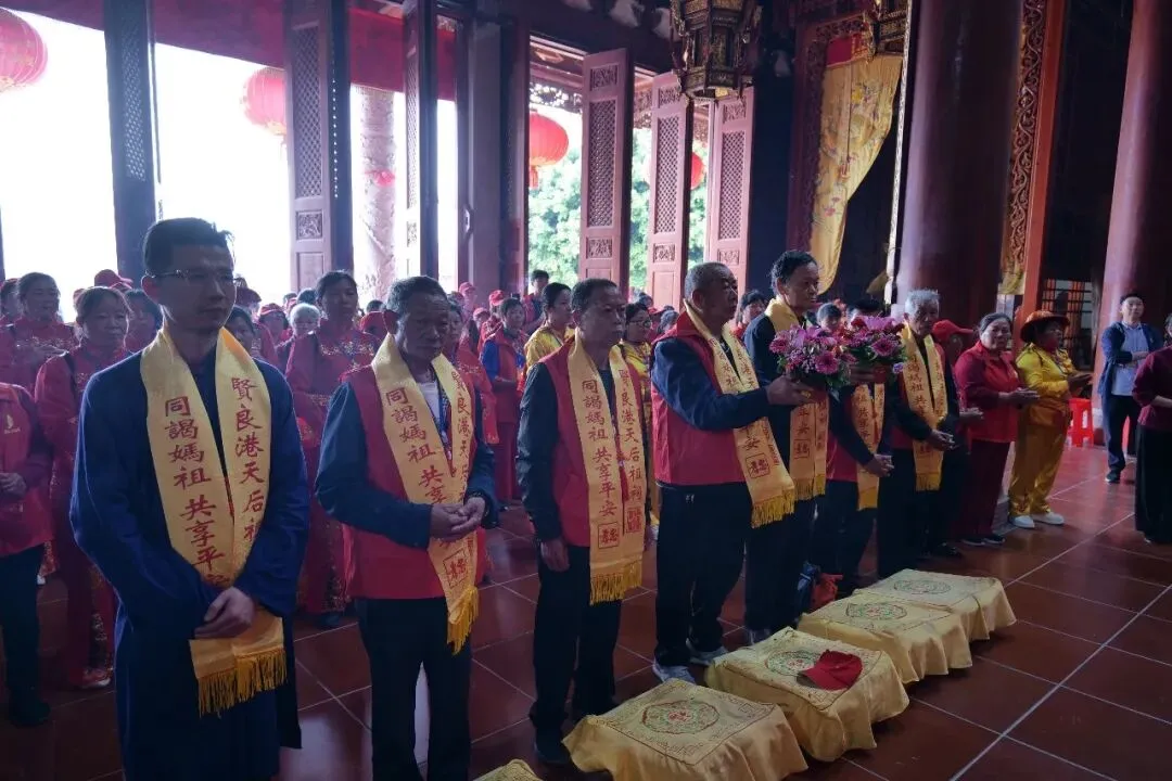 下午2时30分许,福建漳州龙海区紫泥镇金定村金兴宫组织200余位妈祖敬仰者来贤良港谒祖进香。