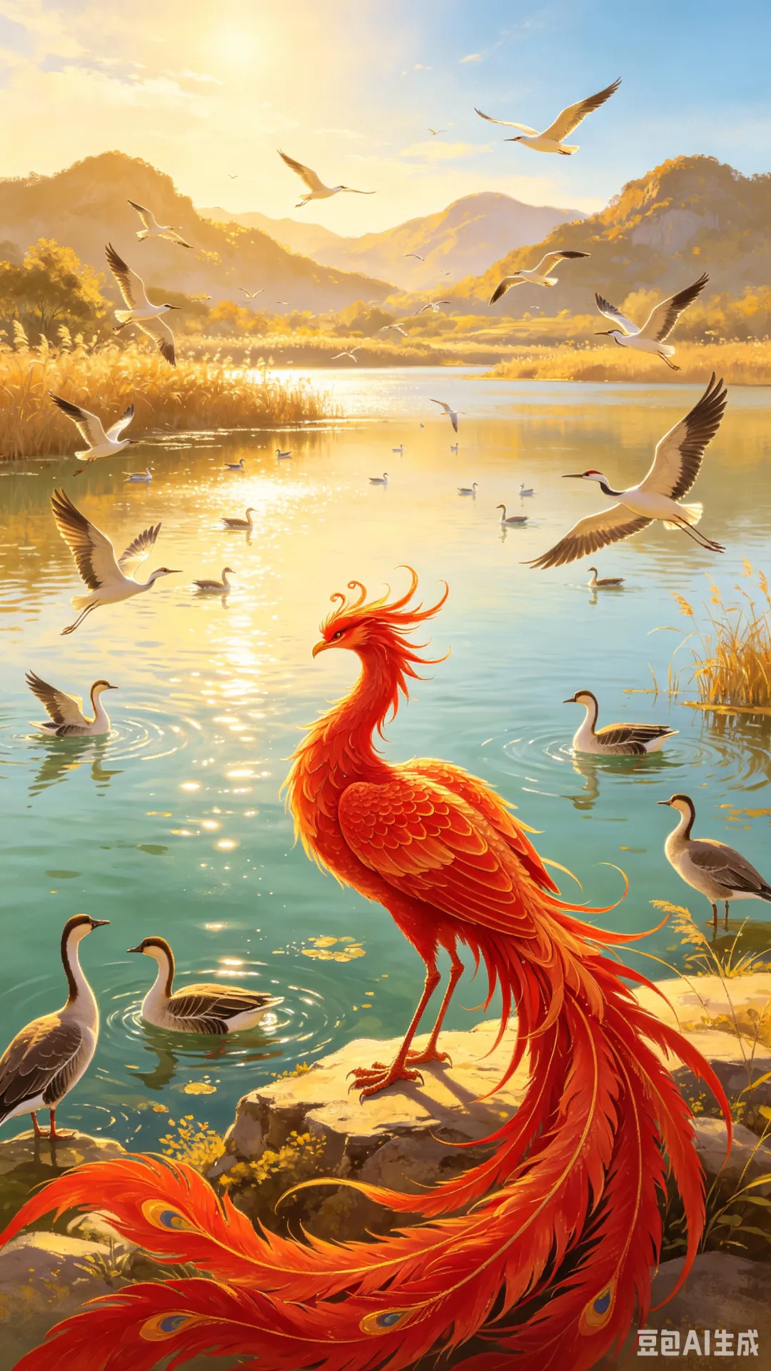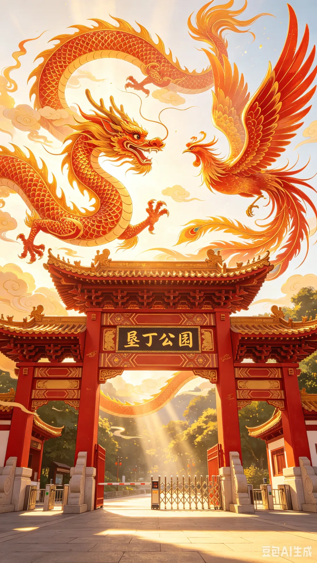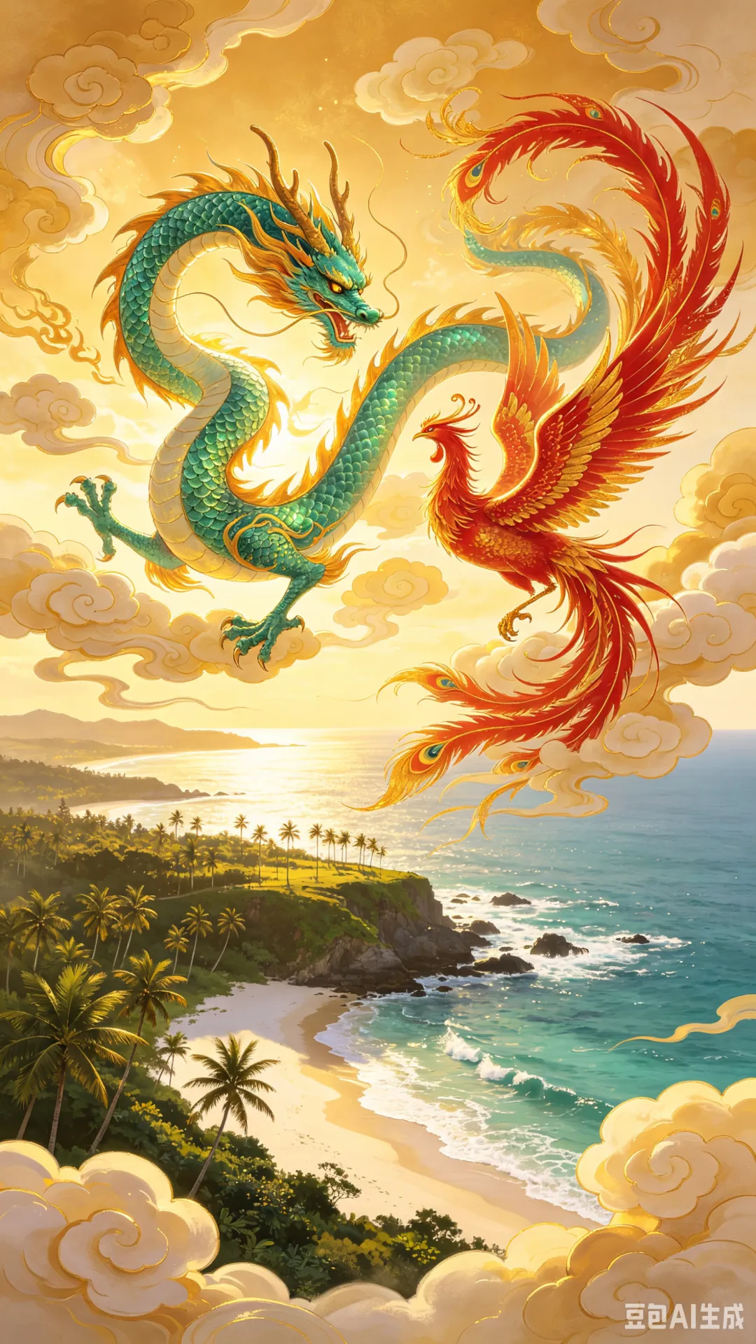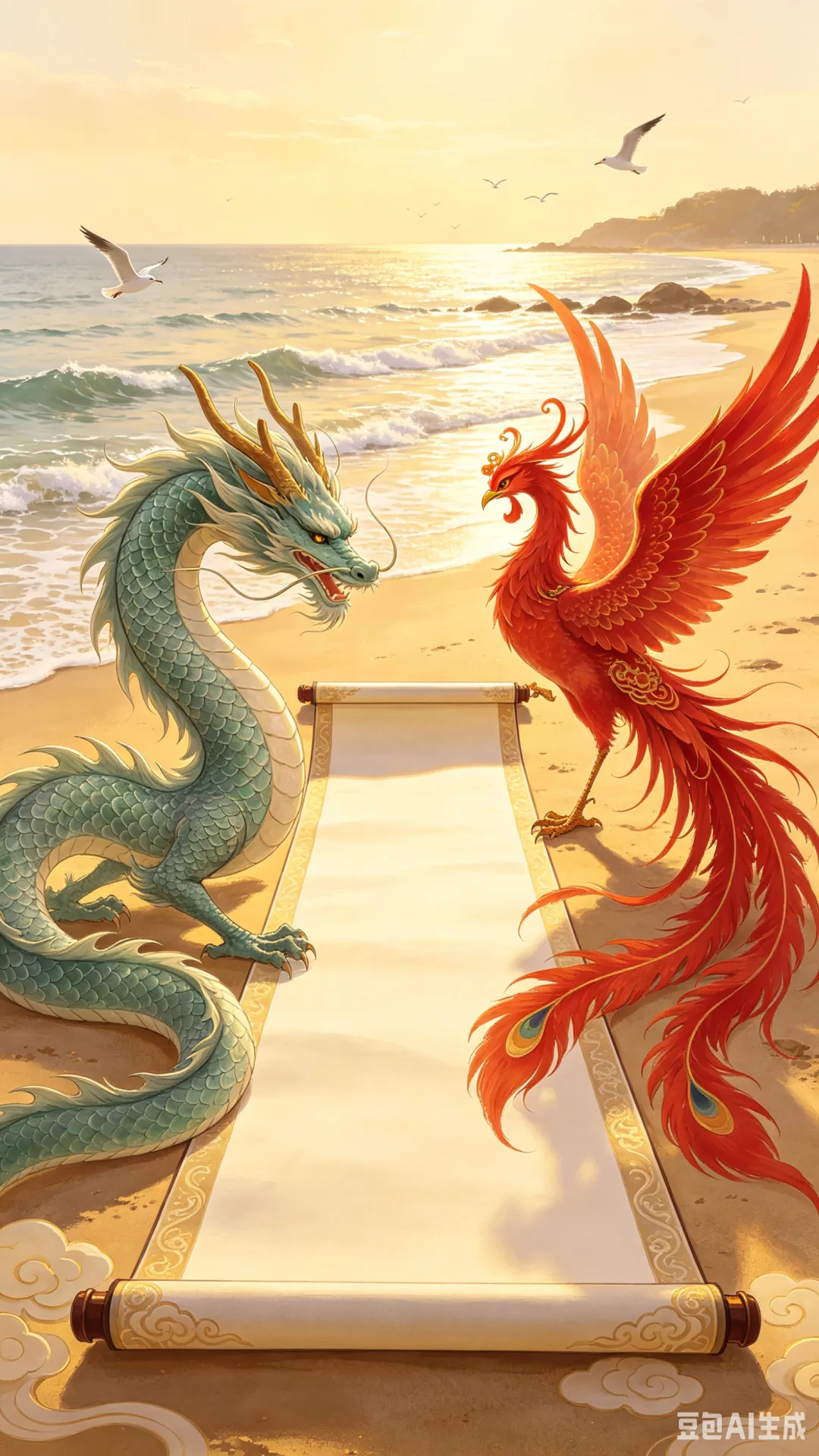 龙凤同游凝吉兆,华夏同心万世扬。