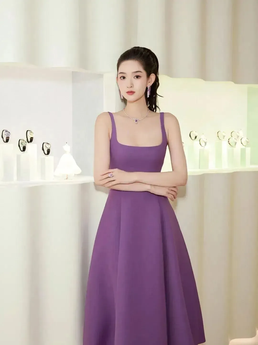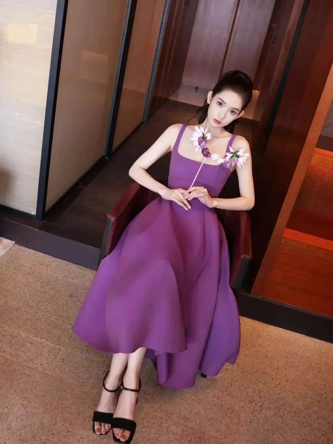 当前位置:首页>美女资讯>清冷女神风 | 紫色吊带礼服造型