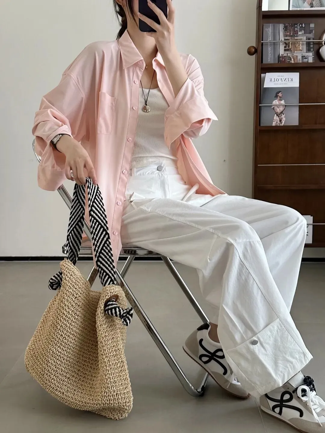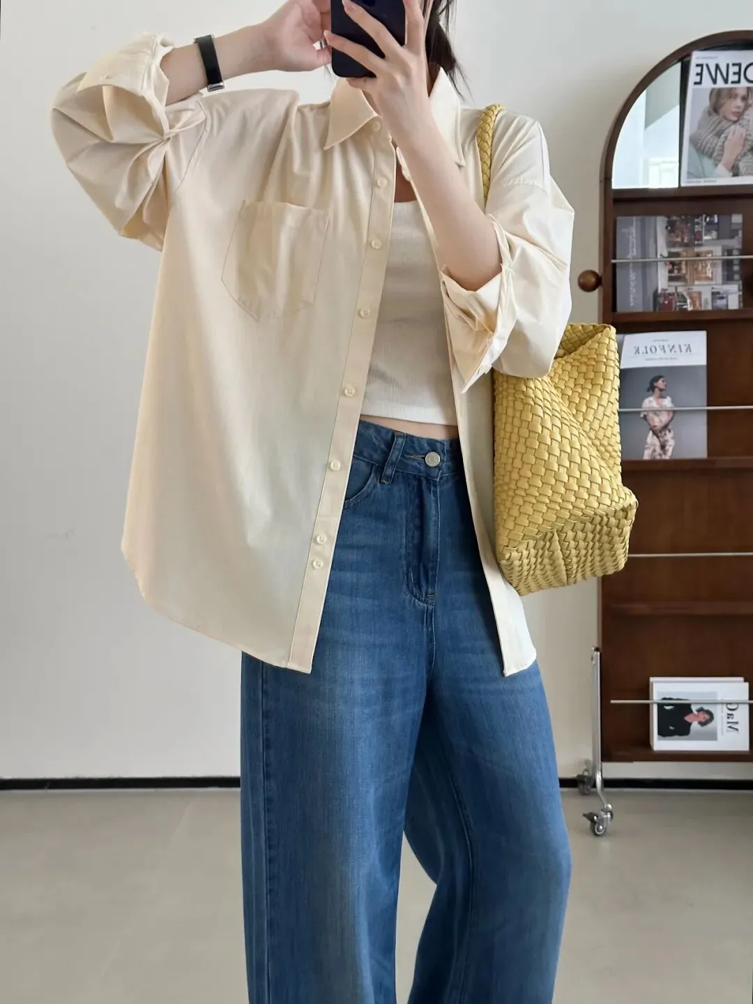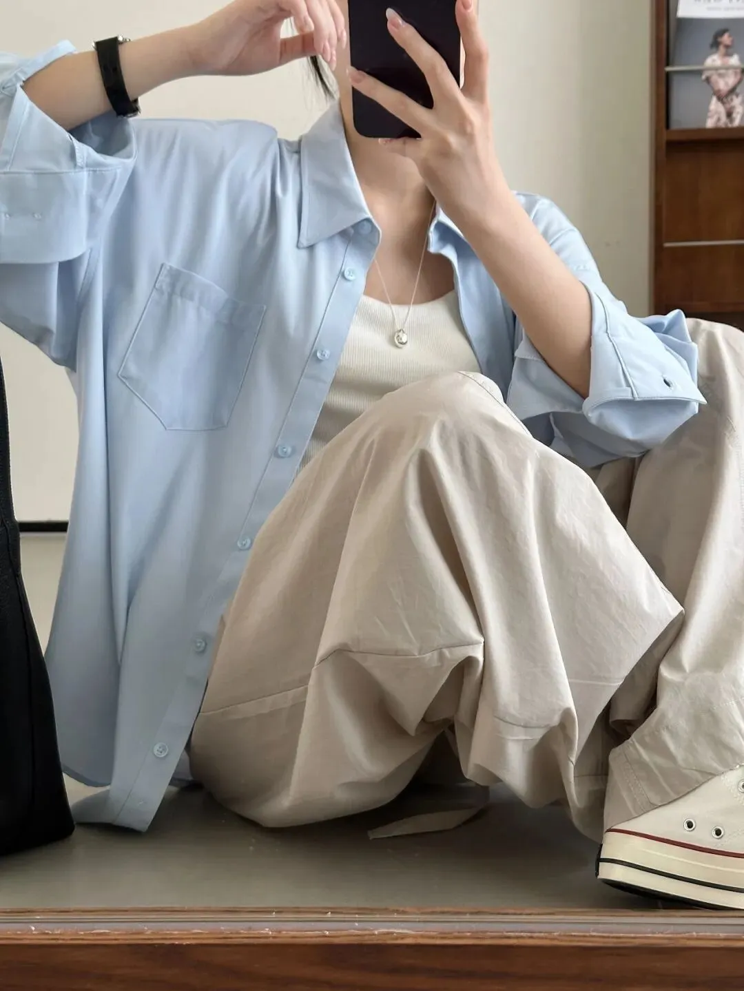 可能有姐妹会担心夏天穿衬衫热,其实这款凉感面料和普通衬衫上身体感还是差蛮多的。