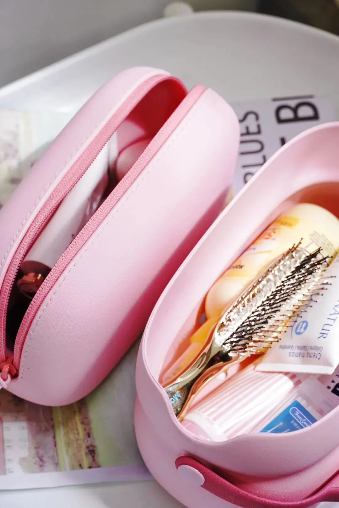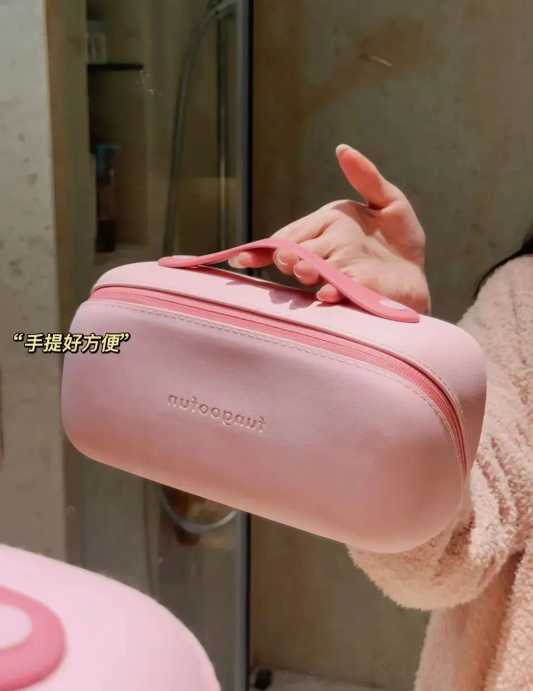 旅行时拿出来就放在洗手台边,也不用担心会被水溅湿。