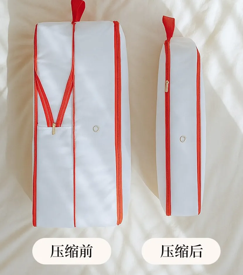 压缩后还变得扁扁小小一个,能给行李箱省出更多空间。