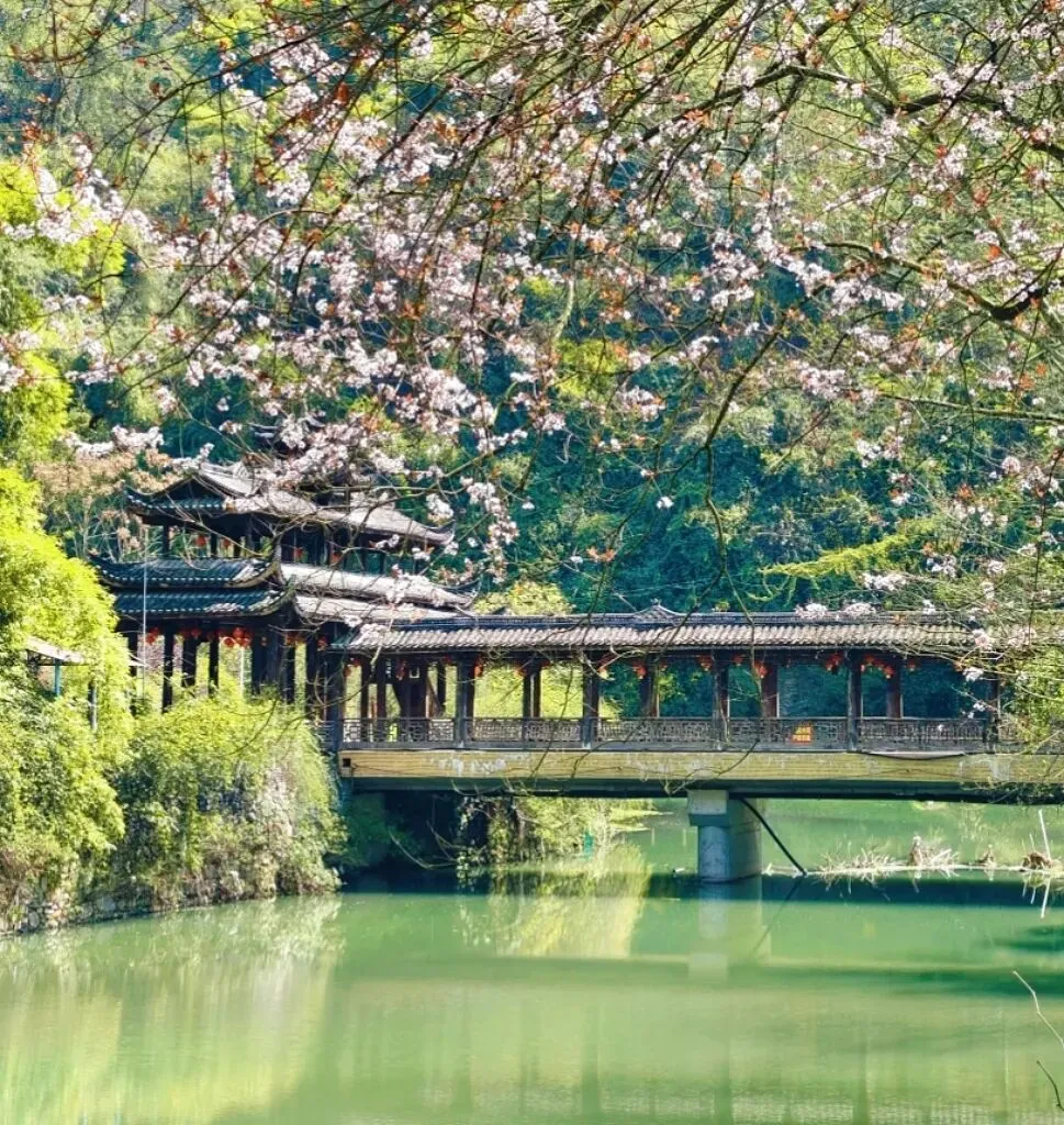 屏山峡谷船浮碧水间,清江两岸山花缀青山 。土家吊脚楼藏在花海,气温舒适,错过真的要等一年!