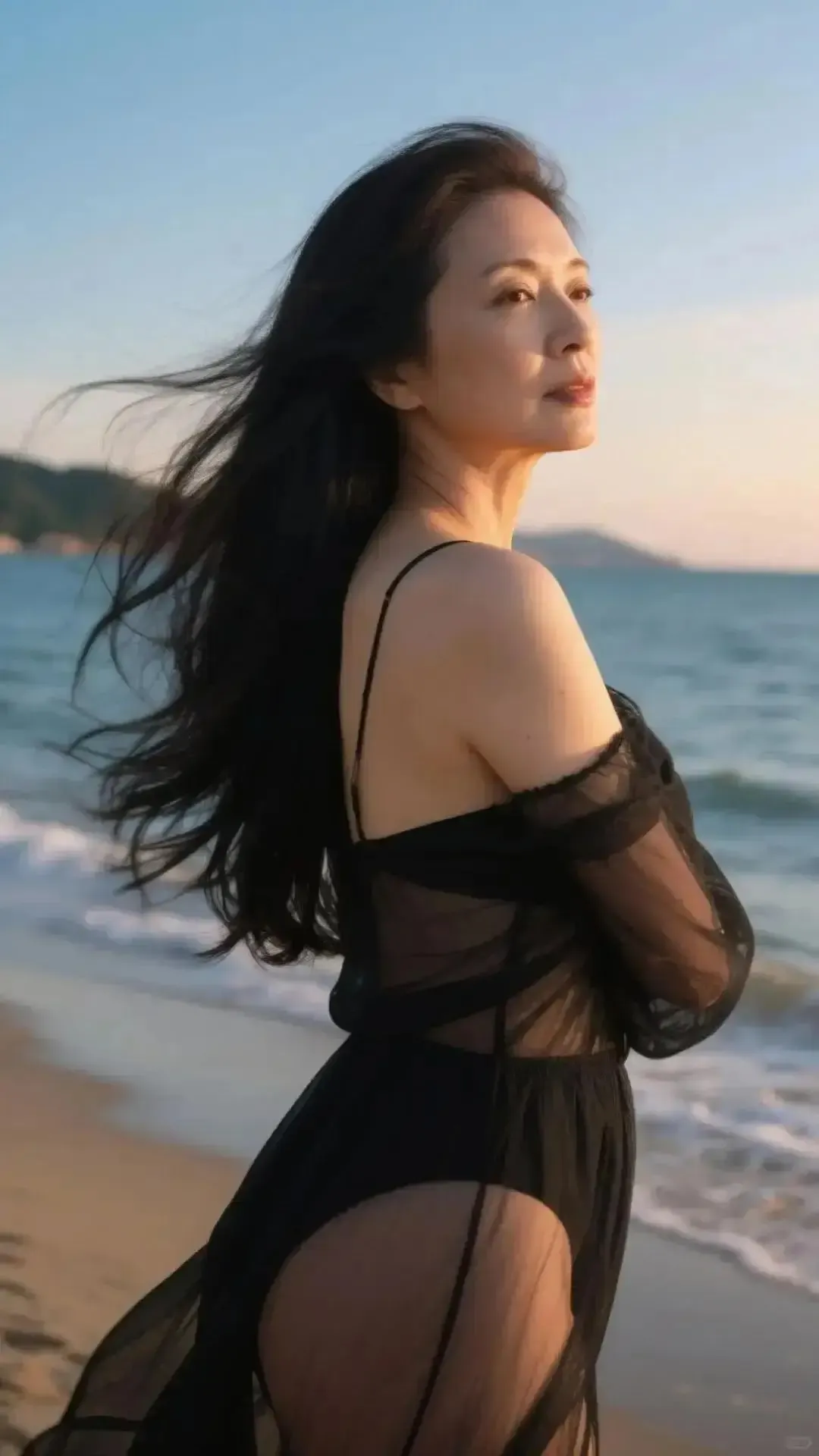 当前位置:首页>美女资讯>黑色连体泳衣+薄纱罩衫,海边吹风也很有分寸感