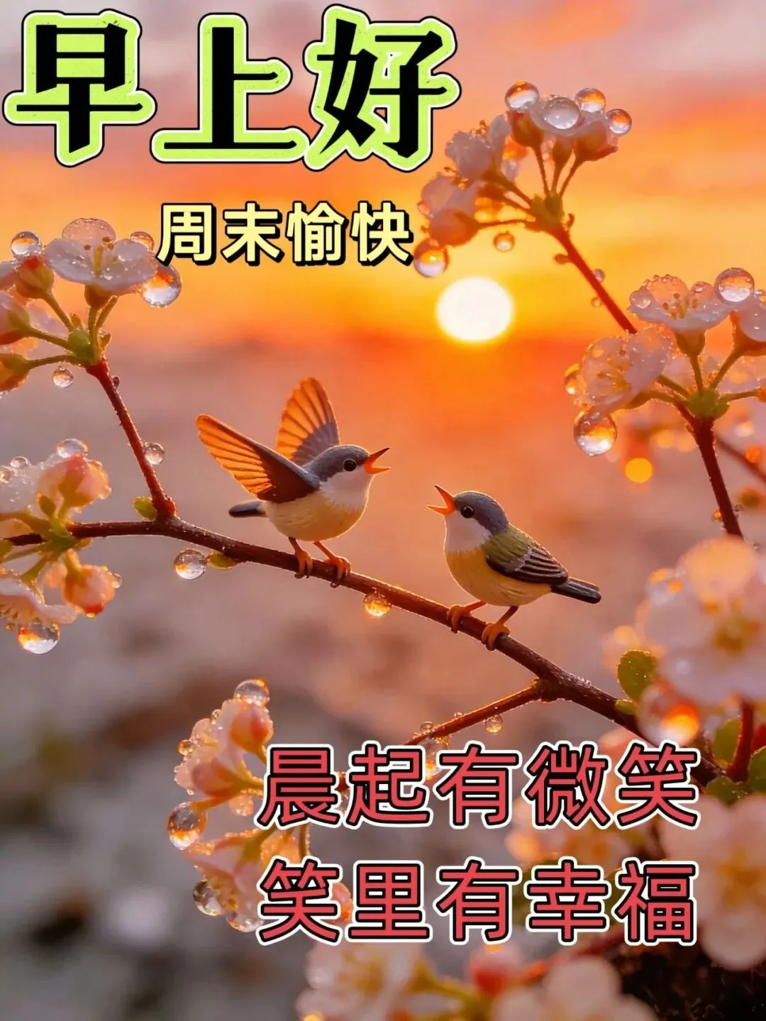 2、晨曦初绽破晓天,露珠晶莹润芳田;身轻心畅步幽径,鸟语悠扬伴清泉;情谊绵长似春水,愿君晨安福绵延。早安!🌹🌞🌺😊🍎🎉