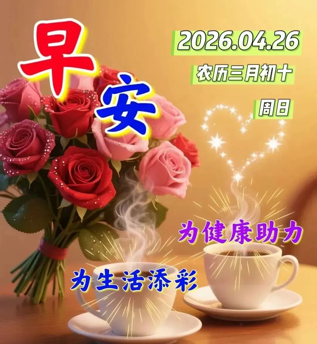 当前位置:首页>美女资讯>2026年4月26日周日早安祝福图片,愿你身体健康,吃饭香甜,每天心情愉快,事事顺心,万事如意!